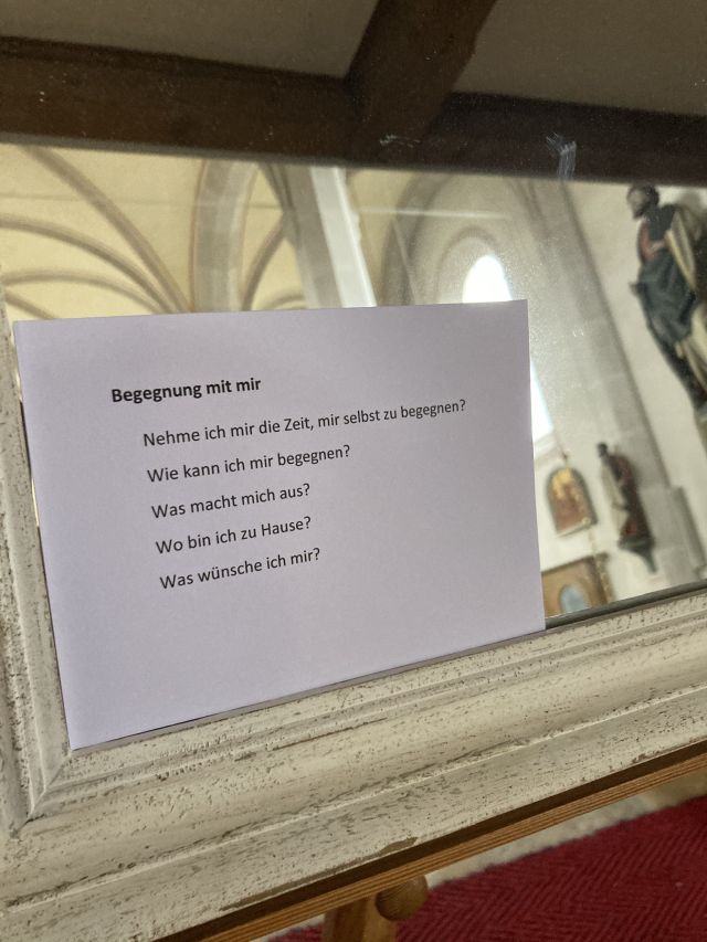 Der zweite Impuls in der Fastenzeit fand als "Impulsandacht" in der offenen Kirche statt. Begegnung stand dabei im Mittelpunkt. Begegnung mit mir selber; Begegnung im Dialog; Begegnung in der Gruppe; Begegnung mit Gott - und welche Barrieren muss ich dabei überwinden.