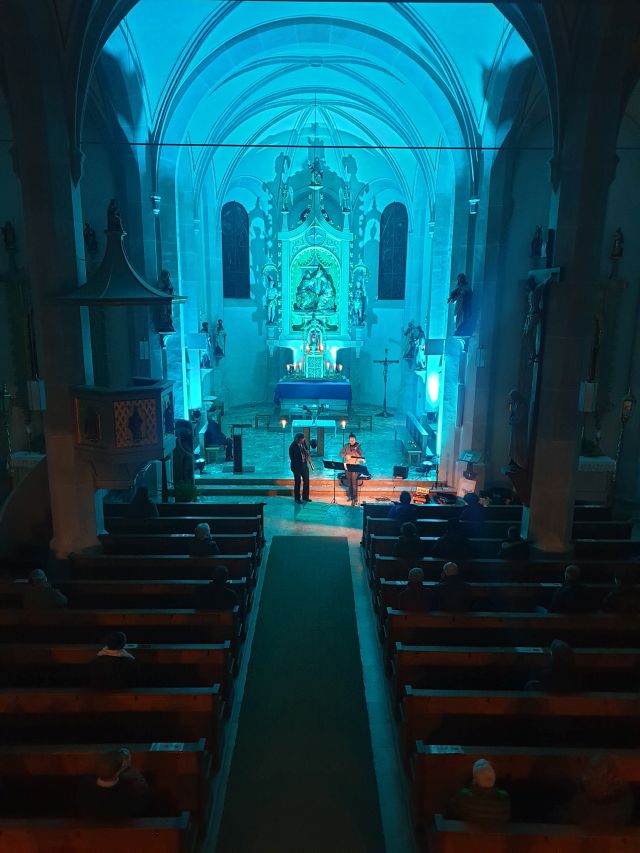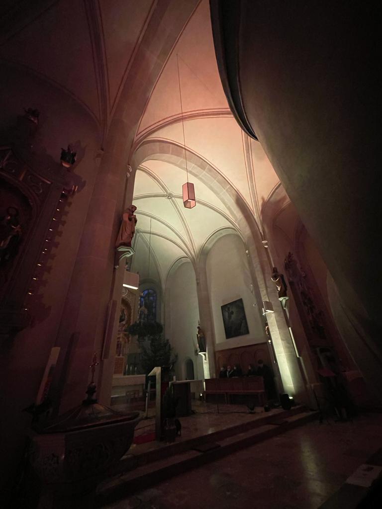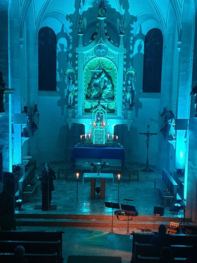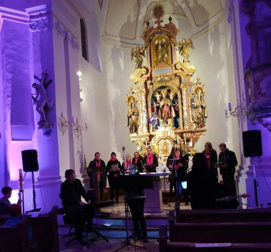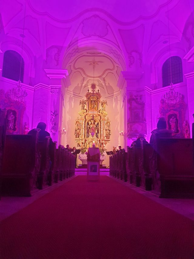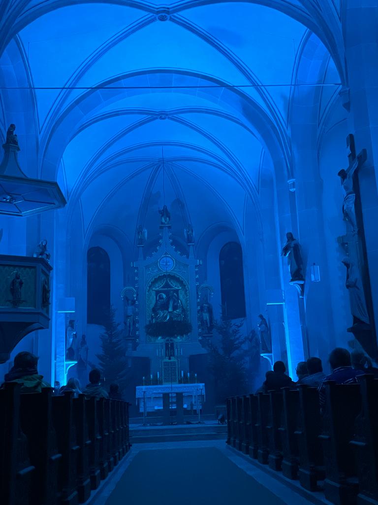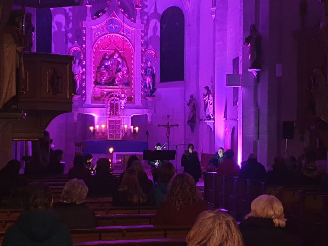 Musik als Resonanz und „DU“ der Schöpfung auf das Leben in all seinen Facetten. So konnte die Cäcilienandacht am Samstagabend empfunden werden, die von einem Ensemble des Rhythmuschors und Quintett-Essenz gestaltet wurde. Außerdem kam zum ersten mal ein Teil der neuen Beleuchtungsanlage zum Einsatz. Ästhetik hat eben viele Facetten. Akustische und Optische.