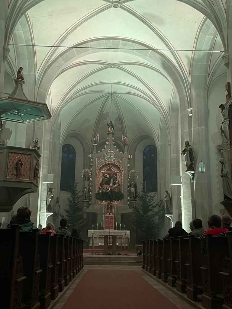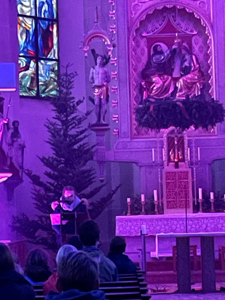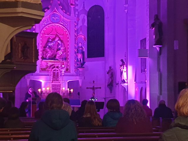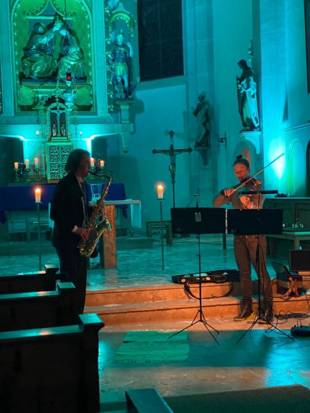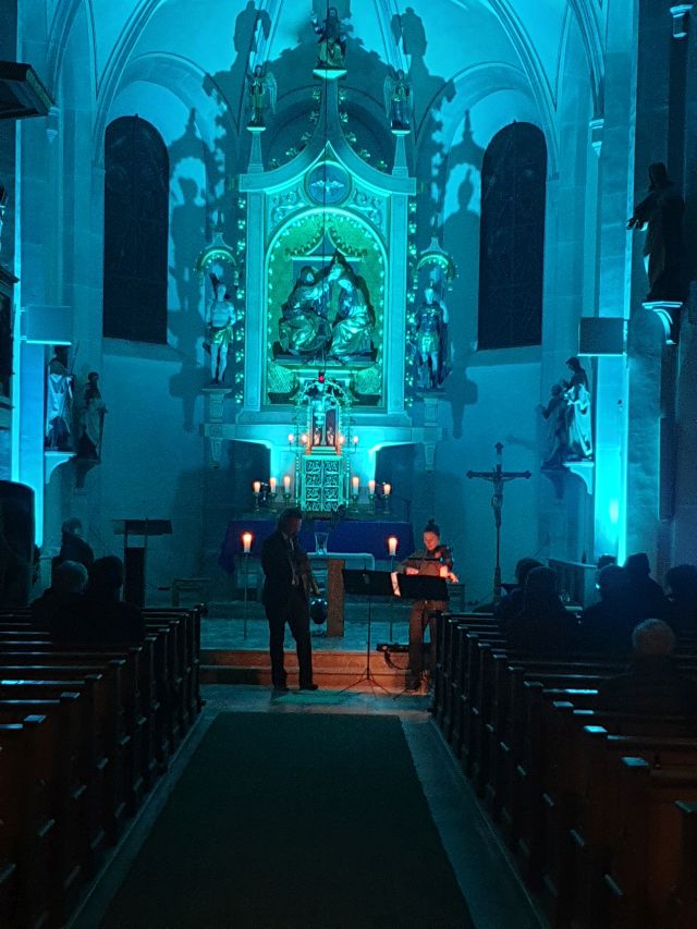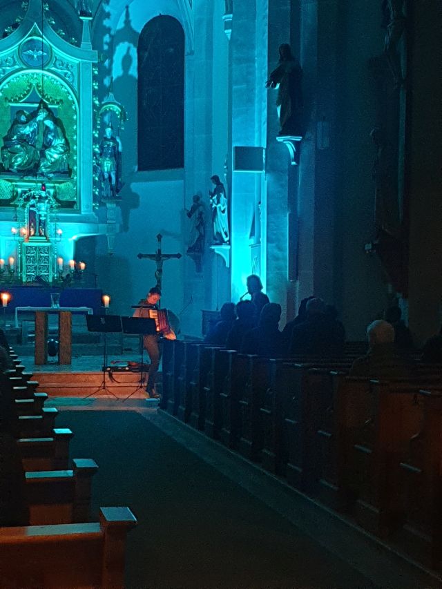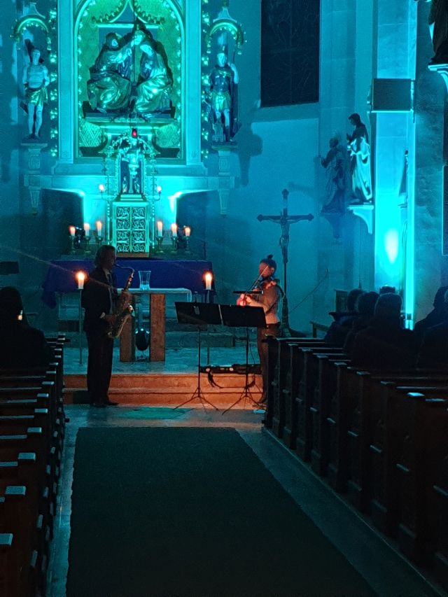 Musik als Resonanz und „DU“ der Schöpfung auf das Leben in all seinen Facetten. So konnte die Cäcilienandacht am Samstagabend empfunden werden, die von einem Ensemble des Rhythmuschors und Quintett-Essenz gestaltet wurde. Außerdem kam zum ersten mal ein Teil der neuen Beleuchtungsanlage zum Einsatz. Ästhetik hat eben viele Facetten. Akustische und Optische.