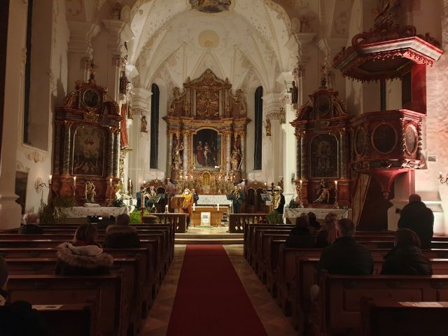 Im Rahmen der Fastenzeit als „Mehrwertzeit“ fanden im Pfarrverband Riedering jeweils am Sonntagabend ab dem 2. Fastensonntag „Mehrwert-Andachten“ statt. Diese Andachten wurden jeweils von Wortgottesdienstleiterinnen vorbereitet und geleitet und hoben sich durch die besondere musikalische Gestaltung ab. Sie gaben sowohl den Teilnehmern als auch den Musikern einen Mehrwert in dieser Zeit. Die Musik war hier bei jeder Andacht ganz unterschiedlich. Die Andachten in Hirnsberg, Riedering und Söllhuben wurden musikalisch von unterschiedlichsten Gruppen gestaltet. Unter anderem von Bläsern der Bachecker Blech, die ein musikalisches Repertoire von Renaissance bis hin zu bayerischen Weisen darboten. Quintessenz begeisterte mit einem Brückenschlag von weltmusikalischen Klängen bis zu leichten Jazzstandards. Bläser des Auftakts Söllhuben spielten verschiedenste Stücke rund um das Thema Mond, über das allseits bekannte „Der Mond ist aufgegangen“ bis hin zum spanischen „Hijo de la luna“. Das DUO Härtel Trübsbach bot mit einer Vielfalt an Instrumenten ein musikalisches Crossover, das vom neu interpretierten steirischen Jodler über ein klassisches Zusammenspiel zwischen Bratsche und Sopransaxophon bis hin zu Jazzklängen, die den Zuhörer an Jan Gabarek erinnerten, reichte.