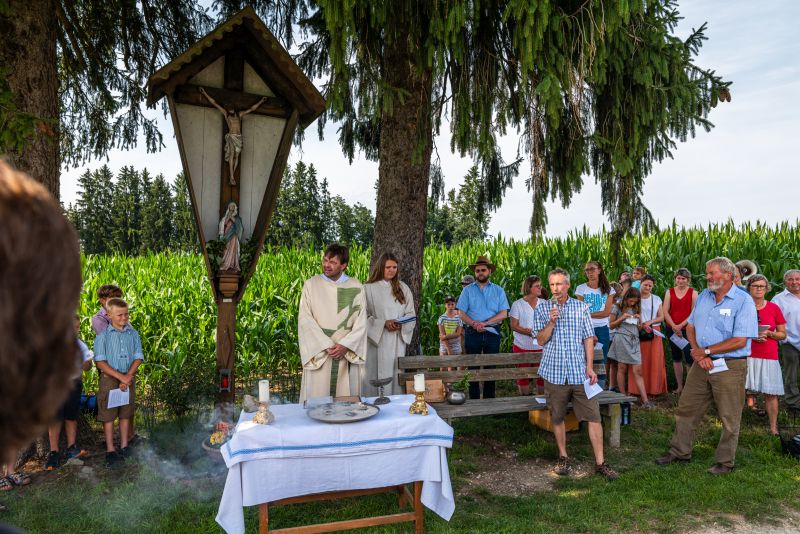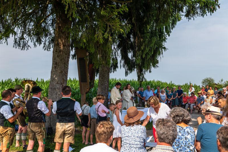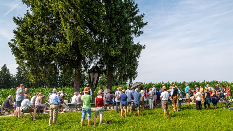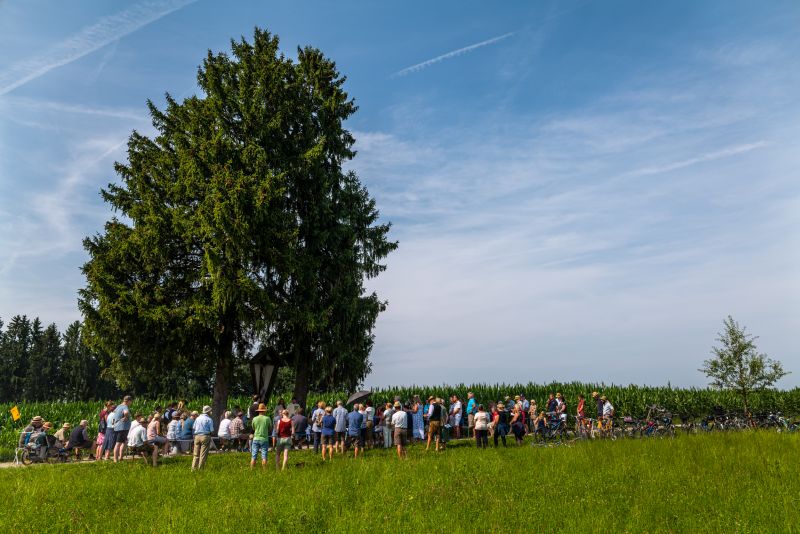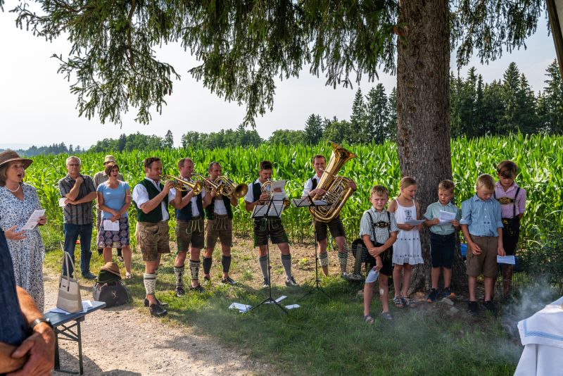 Wo war ma überall? Am Kirchplatz Hirnsberg, in Neikirch, in Kohlstatt, am Trachtenheim in Letten, an der Aussichtskapelle in Söllhuben, an der Arche in Niedermoosen, bei der Feuerwehr in Moosen, an der Kapelle in Wurmsdorf, in Riedering beim Huagl, in Söllhuben am Dorfanger, am Kirchplatz Riedering und in Pietzing.