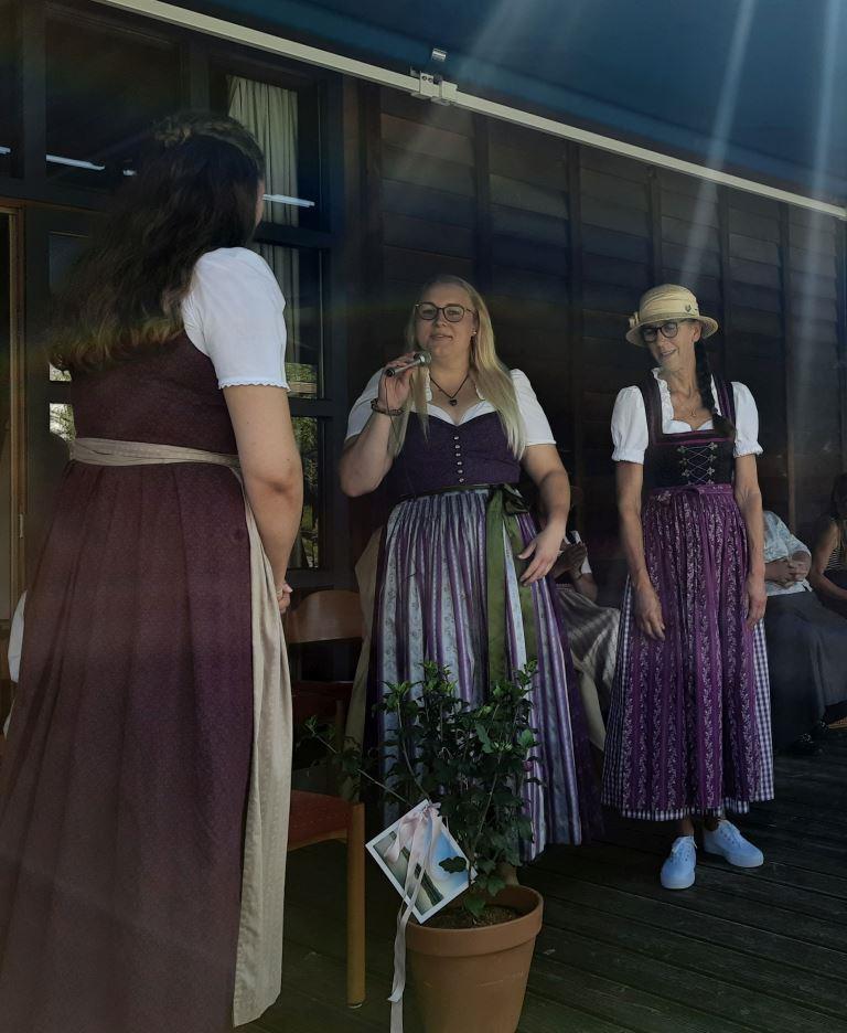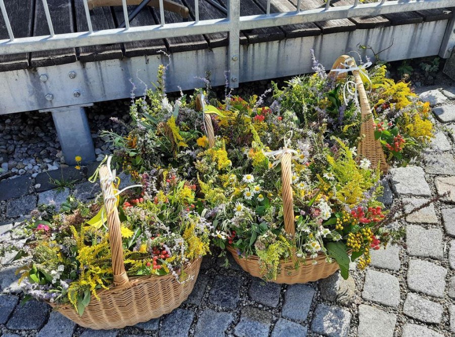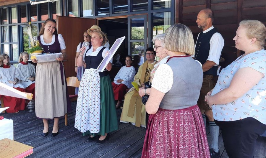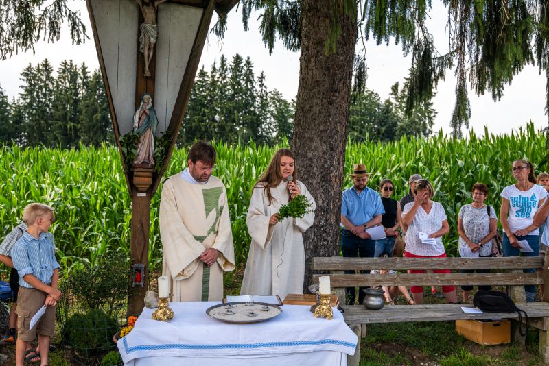 Nach der Weihe der Kräuterbuschen hieß es dann „Abschied nehmen“: Jacqueline Egold, Gemeindereferentin in Ausbildung, verlässt nach zwei Jahren den Pfarrverband, um ihren beruflichen Werdegang im Nachbarpfarrverband Nussdorf-Neubeuern fortzusetzen. Annette Forster als Vorsitzende des Pfarrverbandsrates fand ebenso Worte des Dankes, aber auch der Wehmut, wie Katl Herrmann, die stellvertretend unter anderem für die Firmvorbereitungsgruppe sprach. Zu guter Letzt bedankte sich ihr Praxisanleiter, Gemeindereferent Tobias Gaiser, bei Jacqueline als „einer Frau mit dem Potential, eine sehr gute Gemeindereferentin zu werden“ und „einer wirklich guten Freundin, die er in diesen zwei Jahren gewonnen hat“.