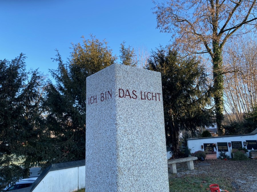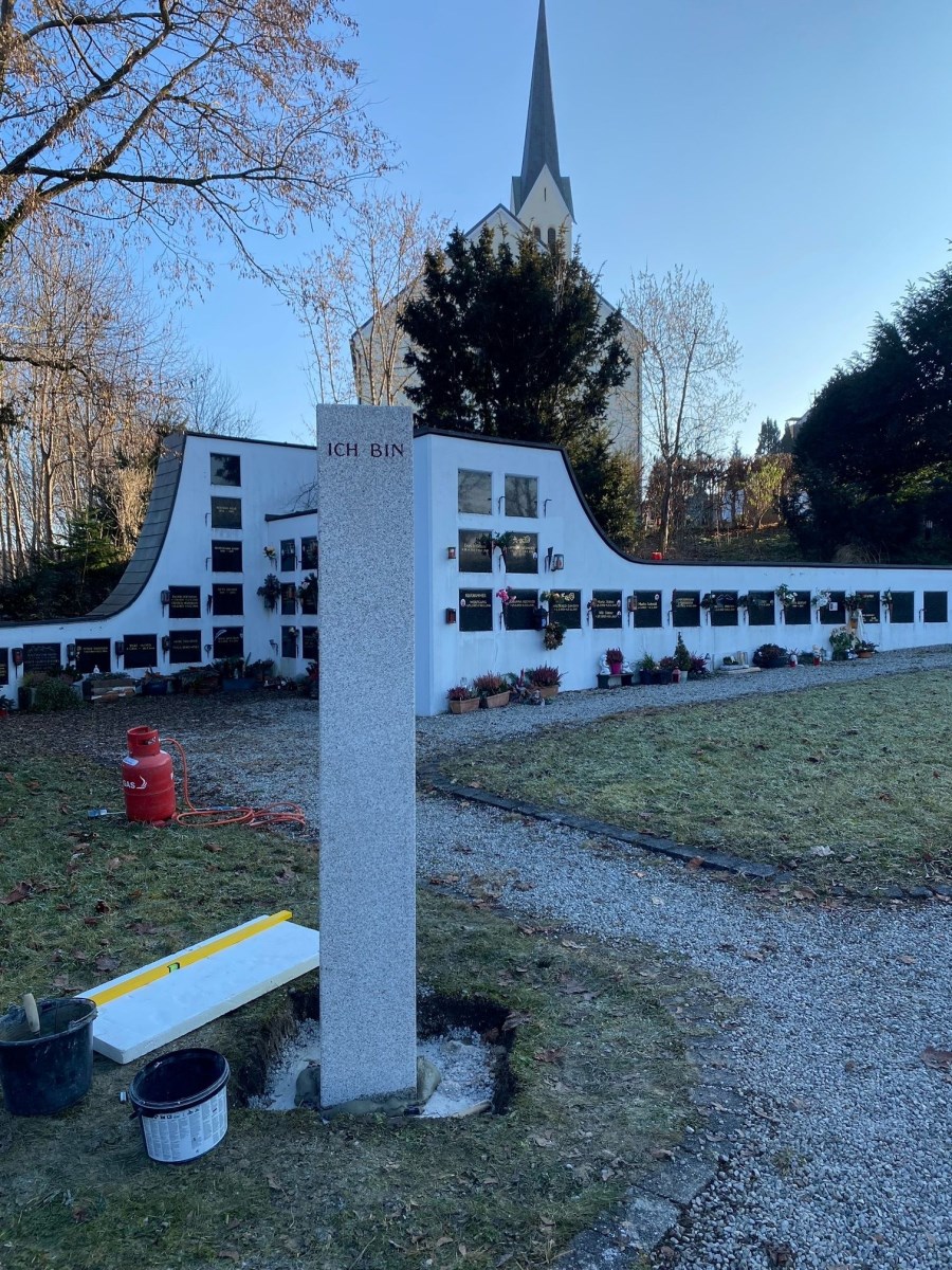 Im Friedhof in Riedering wurde am 22. Dezember 2021 eine Steele angebracht, die das Zentrum für das neue Urnenfeld bildet. Im Frühjahr wird das Beet noch mit Rosen eingefasst und es ist auch geplant den Platz vor der Urnenwand neu zu gestalten.