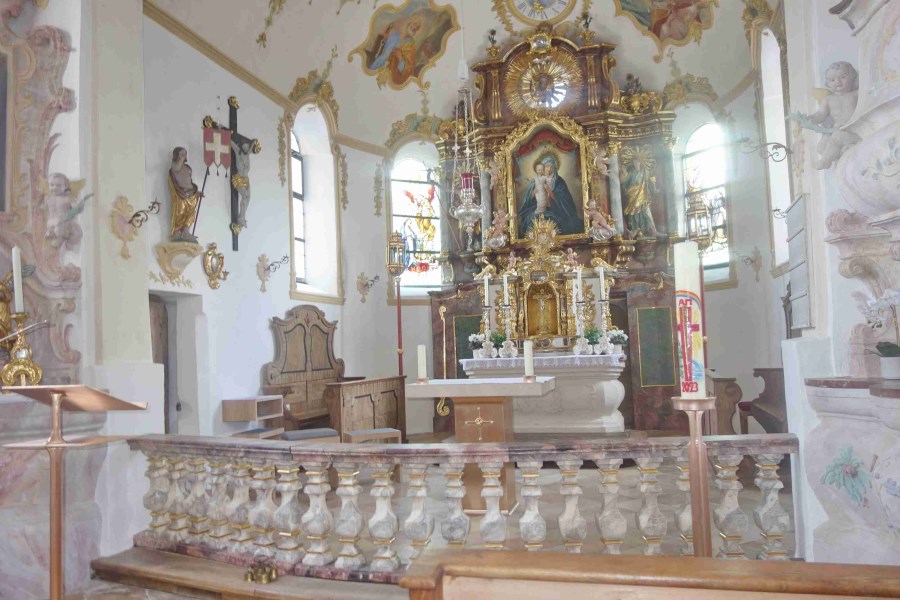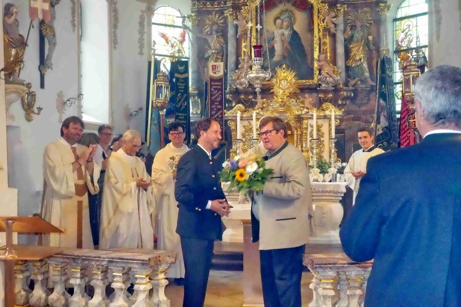 Prachtvoll präsentiert sich nun die Wallfahrtskirche, und nicht minder prachtvoll gestalteten der Riederinger Kirchenchor und die Riederinger Weisenbläser den Festgottesdienst, bei dem auch Pfarrer Claus Kebinger, Pfarrer i.R. Herbert Zimmermann und Gemeindereferent Tobias Gaiser mitzelebrierten.