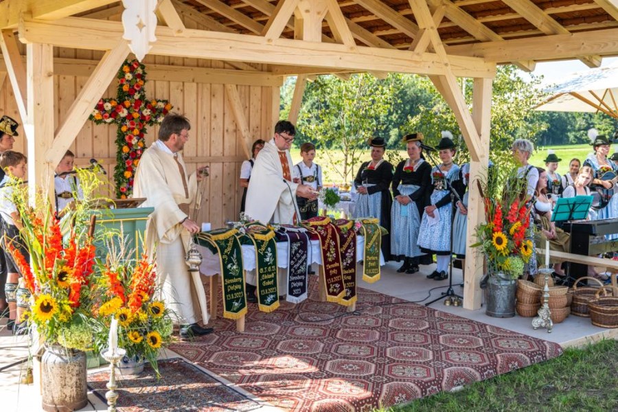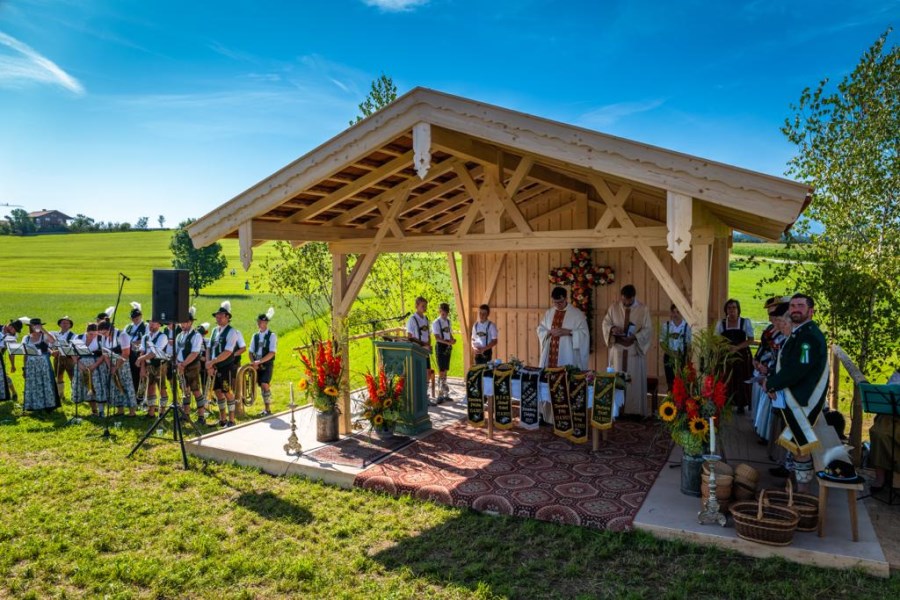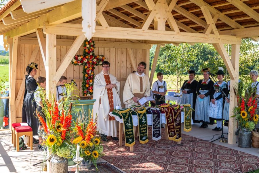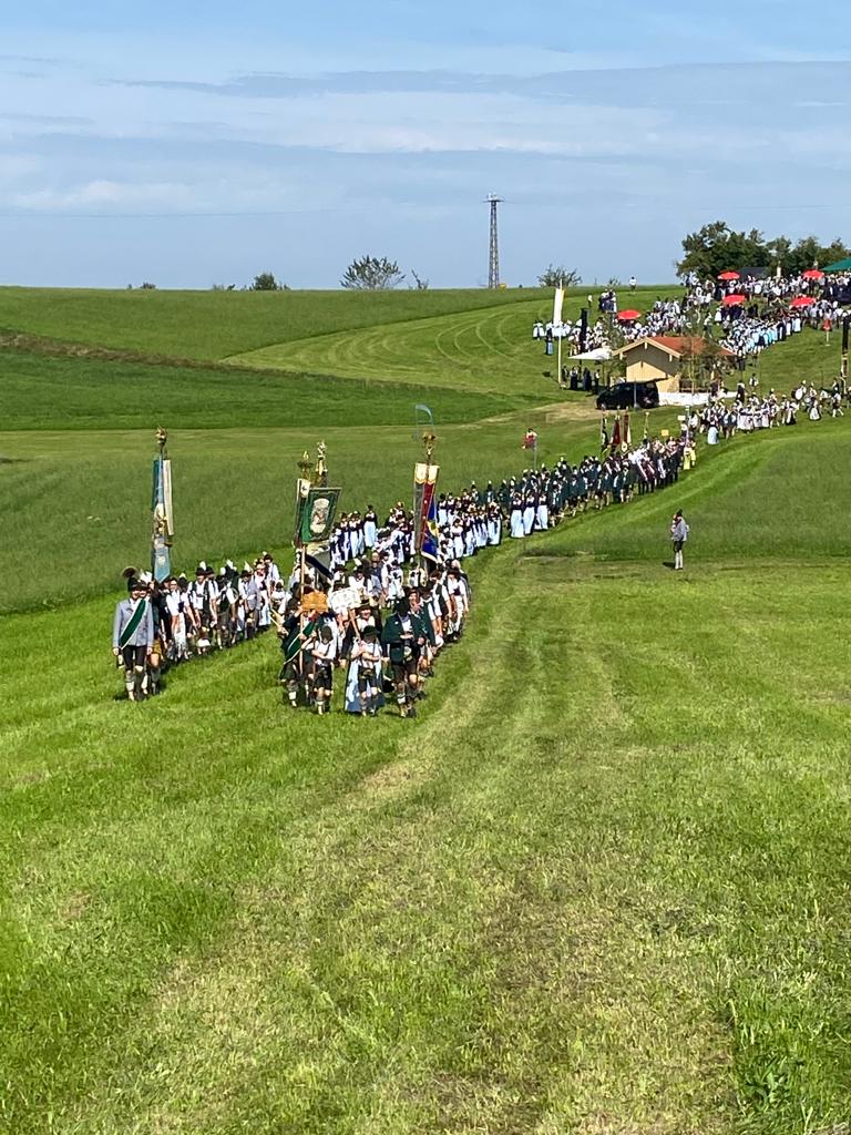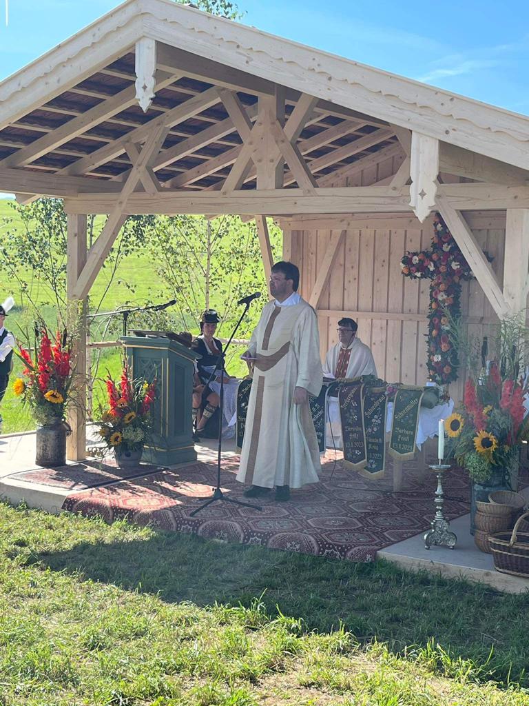 40 Jahre Wiedergründung konnten unsere Gebirgsschützen in Söllhuben feiern. Gemeindereferent Tobias Gaiser und Pfarrer i.R. Herbert Zimmermann stellten im Gottesdienst in ihrer gemeinsamen Predigt den Begriff der Heimat in den Mittelpunkt. Beheimtug in der Tradtion, Beheimatung in der Pfarrei und Beheimatung, die ermahnt immer auch in die Zukunft und nach vorne zu blicken. Nach dem Totengedenken und einem kleinen Festzug wurde noch richtig gefeiert. Das Patrozinium der Pfarrei und das Jubiläum der Gebirgsschützen.