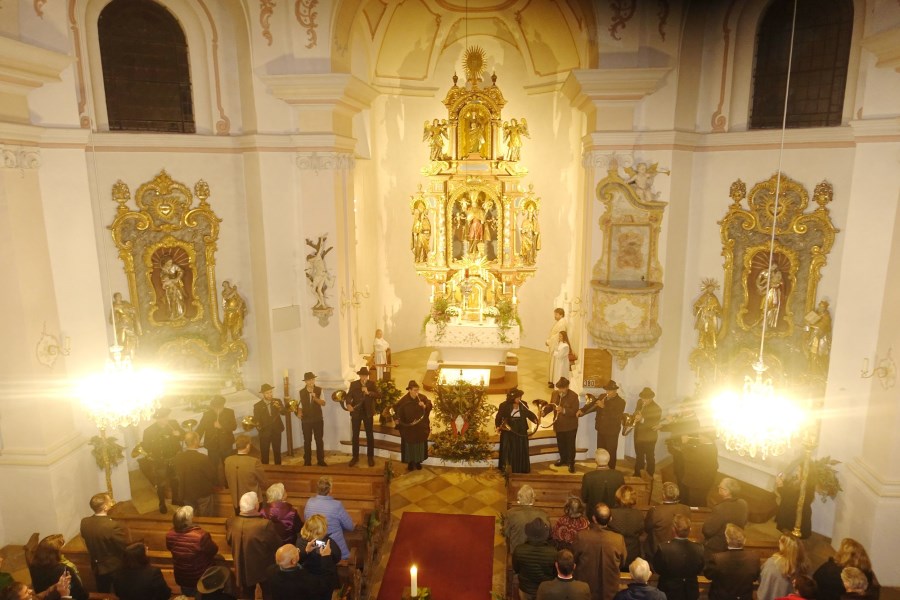 Eine gute und schöne Tradition in der Jägervereinigung Rosenheim ist es, abwechselnd in den sechs Hegeringen einmal im Jahr eine Hubertusmesse zu feiern. Heuer gestalteten zwölf Mitglieder der Inntaler Jagdhornbläser die Messe in der Pfarrkirche „St. Rupert“ in Söllhuben unter der Leitung von Hornmeister Heinz Portenhauser. Gemeindereferent Tobias Gaiser erinnerte beim Wortgottesdienst mit Kommunionfeier an den Heiligen Hubertus, der als Einsiedler, Missionar und Bischof für die Jäger ein Vorbild und Ansporn ist, waidgerecht zu jagen. „Hubertus hat im Geschöpf den Schöpfer selbst gesehen und so wollen und sollen wir auch Tier, Natur und Welt verehren und zur Schöpfungsverantwortung in allen Bereichen der Gesellschaft beitragen“ – so der Seelsorger vom Pfarrverband Riedering. Zum Abschluss bedankte sich gastgebender Jäger Andi Hirzinger für die musikalische Gestaltung der Jagdhornbläser und für den sehenswerten Altarschmuck. Beim Gedenken an die Verstorbenen aus der Jägerschaft wurde besonders an Simon Hilger aus Söllhuben gedacht, er zeigte 50 Jahre Verantwortung für Wald, Wild und Jägergemeinschaft. Zum anschließenden gemütlichen Beisammensein (Tobias Gaiser nach dem Segen: „Jetzt machen wir es wie die Bayerische Staatsregierung: wir verlegen die Jagd in die Wirtschaft!“) konnte Jakob Hündl aus Aschau als Vorsitzender der Jägervereinigung Rosenheim im Gasthaus Hirzinger zahlreiche Ehrengäste und Freunde der Jagd willkommen heißen.