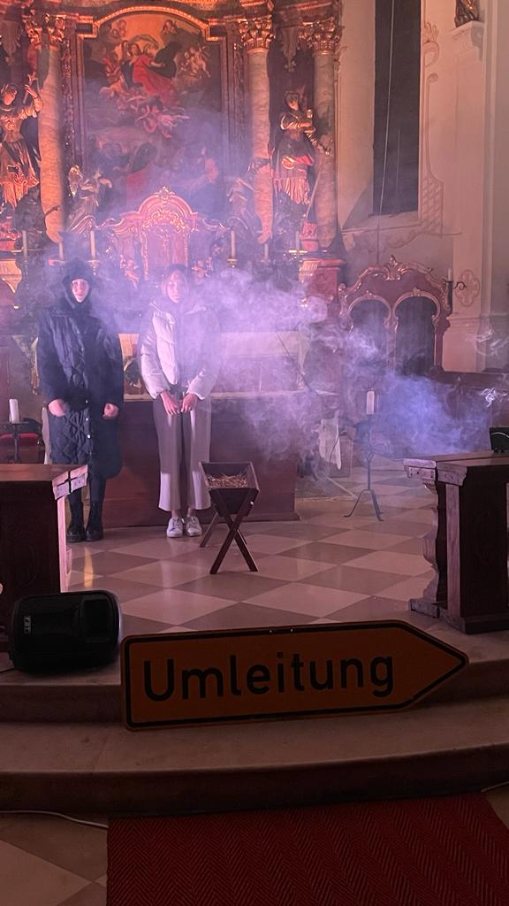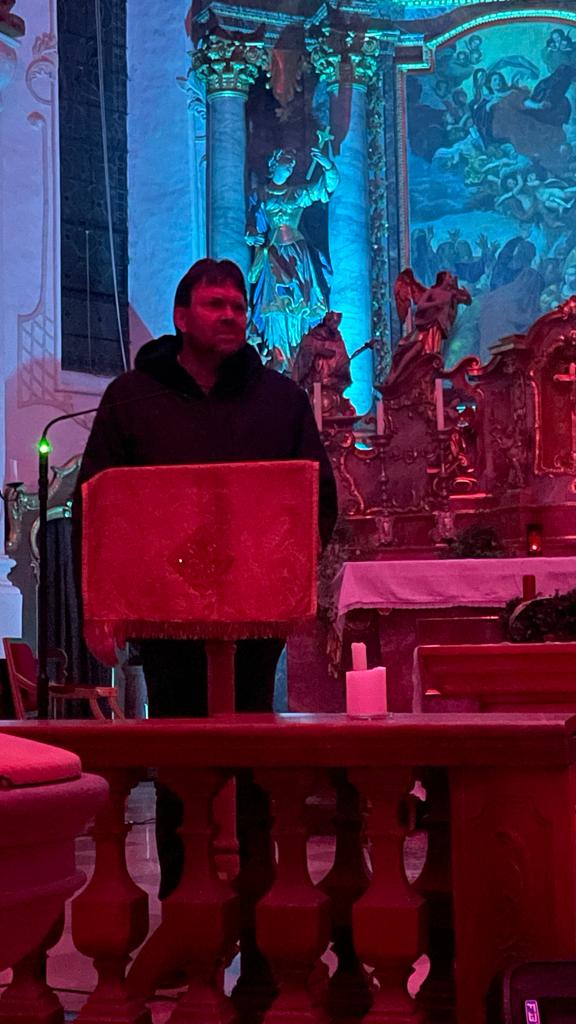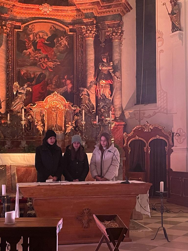 Gestaltet wurde die Andacht von den Oberministrantinnen und Oberministranten des Pfarrverbands, gemeinsam mit Gemeindereferent Tobias Gaiser und Pfarrverbandsratsvorsitzende Annette Forster. Den Schlusssegen sprachen drei Oberministrantinnen vom Altar aus - auch ein kraftvolles Zeichen. Am Ende gabs für die Minis noch das Weihnachtsgeschenk - nach der kraftvollen Andacht, eine Powerbank fürs Handy (Mit Ministranten- und Pfarrverbandslogo MNSTR). Bei Punsch und Lebkuchen wurde noch gut nachgeratscht und da rund um die Kirche der Wind pfiff wurde der Kirchenraum gemütlich und schützend weiter genutzt.