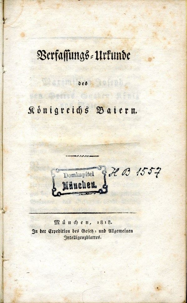 Verfassungs-Urkunde des Königreichs Baiern, München 1818