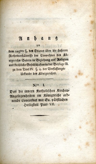 Das Konkordat als Anhang zur bayerischen Verfassung von 1818