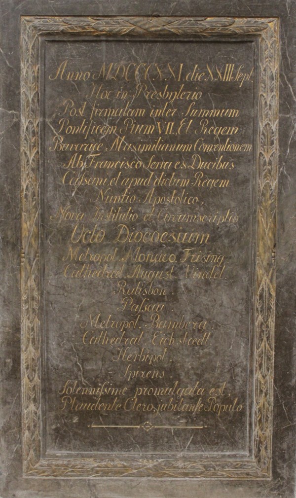 Erinnerung an die feierliche Verkündung der Errichtung und Umschreibung der acht bayerischen Diözesen