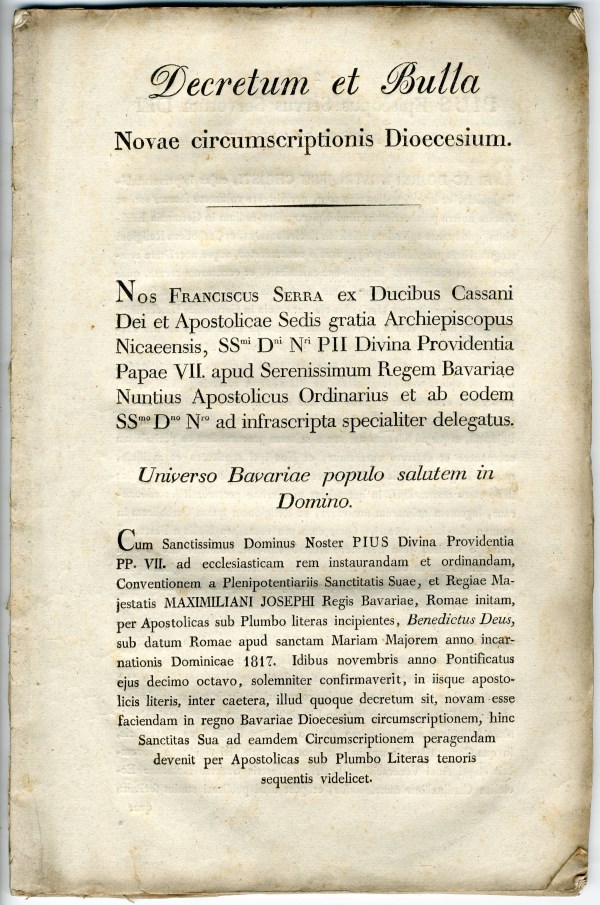 Druck: Decretum et Bulla Novae circumscriptionis Dioecesium [München 1821]