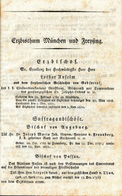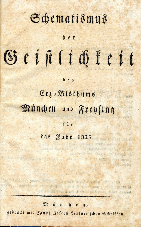 Schematismus der Geistlichkeit des Erz-Bisthums München und Freysing für das Jahr 1823, München [1823]