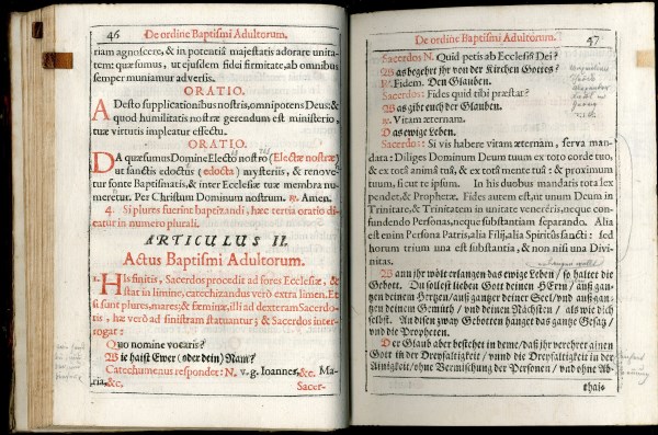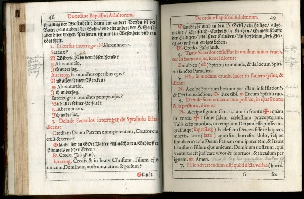 Durch glückliche Umstände hat sich das originale liturgische Buch erhalten, das der Taufspender im Gottesdienst verwendete. Auffallenderweise handelt es sich dabei nicht um die neueste zur Verfügung stehende Ausgabe des „Rituale“ von 1743, sondern um die 70 Jahre ältere, inhaltlich allerdings weitgehend identische Vorgängerausgabe.