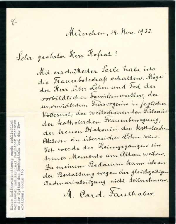 Die Dokumente über Leben und Wirken bedeutender Frauen reichen von der Münchner Karmelitin und Seherin Maria Anna Lindmayr (1657-1726) bis zu Ellen Ammann (1870-1932), der aus Schweden stammenden Gründerin des Katholischen Frauenbundes in Bayern und Abgeordneten des Bayerischen Landtags.