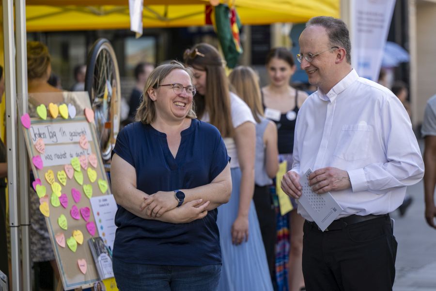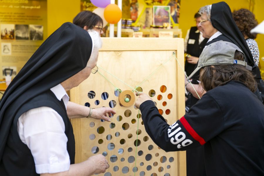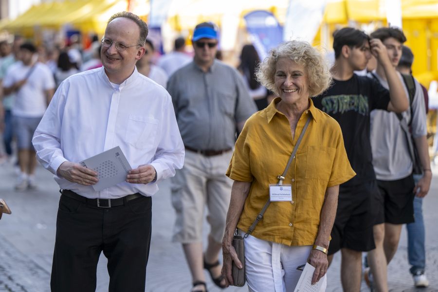 Kirche wurde zudem mit einer Vielfalt an spirituellen, unterhaltsamen und interaktiven Angeboten mitten in der Stadt erlebbar: Auf dem SPIELPLATZ, direkt vor dem Münchner Dom, gab es eine Hüpfburg und Angebote für Jung und Alt. Alle Kinder, die Benno heißen, durften mit ihrer Familie kostenlos auf den Südturm des Doms! In der Kaufingerstraße erwartete die Besucher:innen der MARKTPLATZ mit zahlreichen Ständen und Mitmachaktionen.