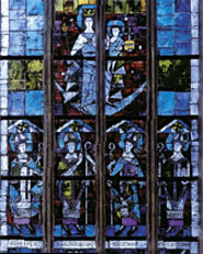 Der hl. Benno unter den Patronen des Erzbistums München und Freising. Glasfenster in der Frauenkirche von Robert Rabolt, 1965 (Ausschnitt)