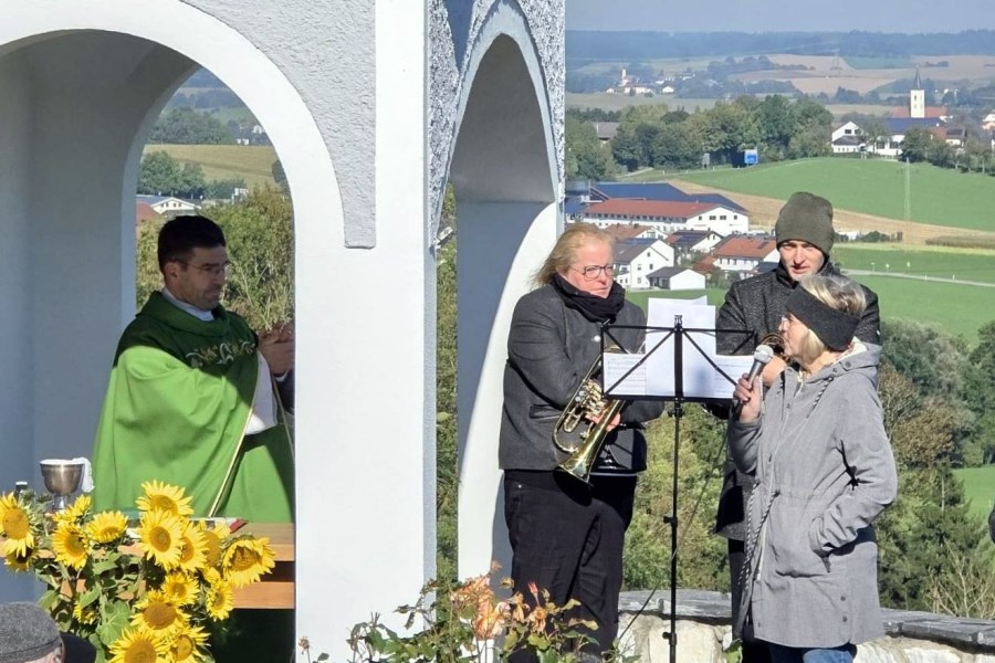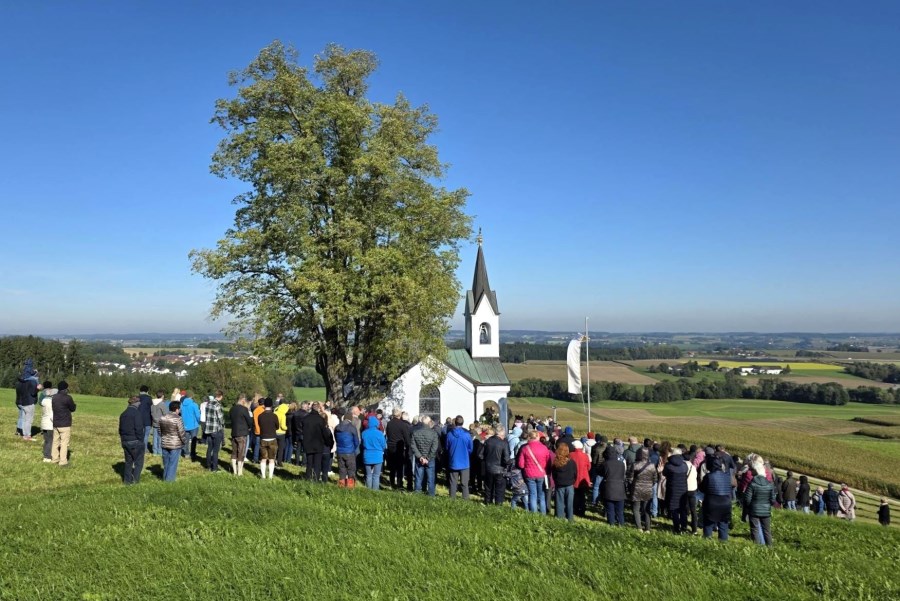 Nachdem im vergangenen Jahr am 3. Oktober die Bergmesse in Ramsau für die Gläubigen aus Dorfen und Oberdorfen wegen geringer Anmeldungen und schlechten Wetters abgesagt werden musste, entstand bei den beiden Pfarrgemeinderätinnen Isolde Freundl und Elisabeth Mengele-Kley die Idee in diesem Jahr eine Bergmesse „dahoam“ anzubieten. Mit ausreichend „Bergpanorama“ fiel die Wahl auf die Andrebauernkapelle in Thal bei Schiltern. Die Eigentümer der Kapelle, Familie Stadler, freuten sich sehr über die Anfrage aus dem Pfarrverband Dorfen – Oberdorfen und stellten gerne die Kapelle für die Bergmesse zur Verfügung. Ebenso kam sehr schnell die Zusage von Dekan Martin Ringhof die Messe zu zelebrieren sowie von der Stoaberger Musi (Familie Ernst aus Steinberg bei Schwindkirchen) die musikalische Gestaltung zu übernehmen.