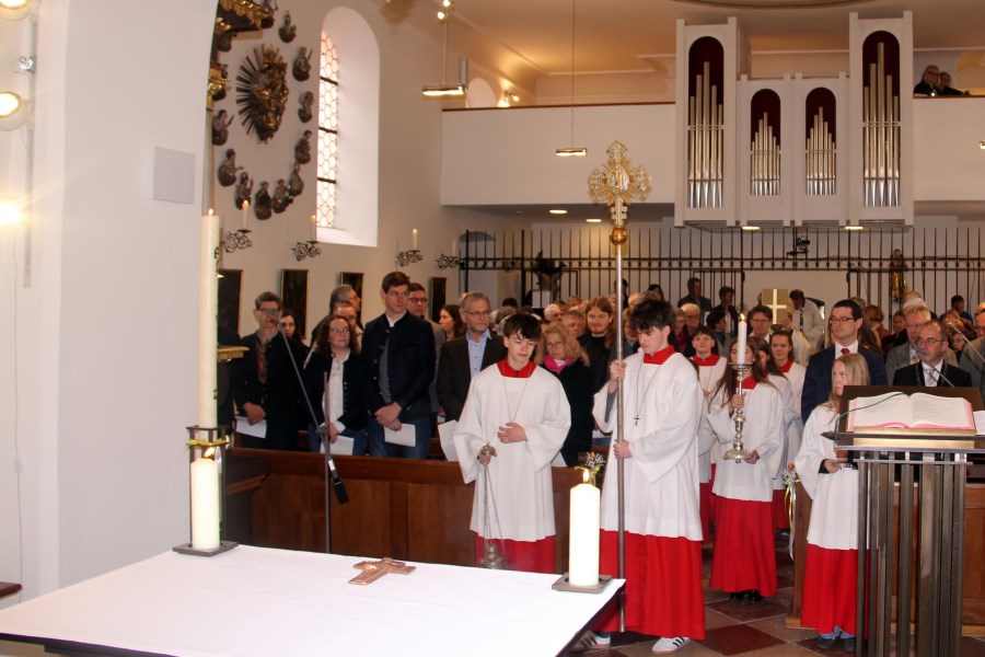 Die Marktkirche war bis auf den letzten Platz besetzt, außerdem feierten die ca. 150 Pfarreimitglieder den Gottesdienst in der Pfarrkirche per Video-Übertragung mit. Ein besonderer Dank gilt den Stadtwerken Dorfen mit ihrem Geschäftsführer Klaus Steiner, die die Logistik für die Videoübertragung unentgeltlich zur Verfügung gestellt haben.