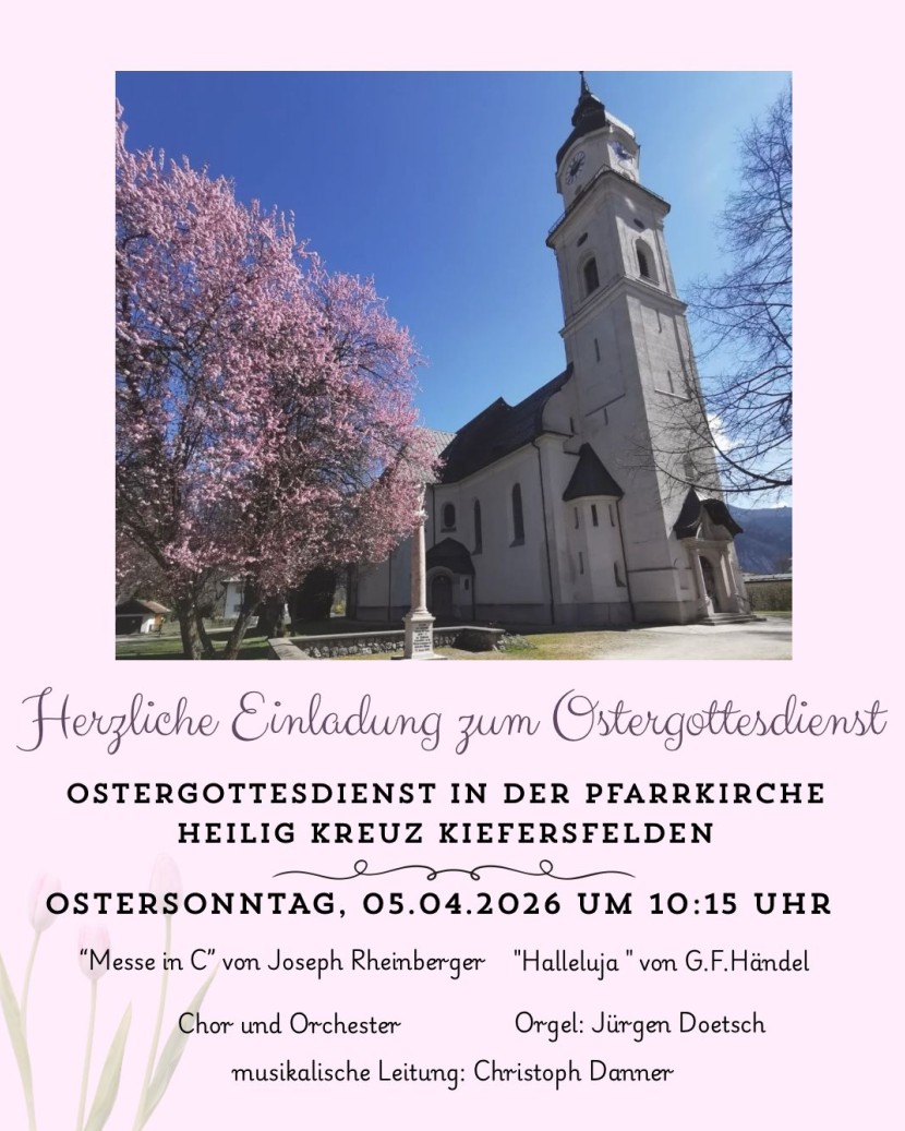 So., 05.04., 10.15 Uhr, Ostergottesdienst mit dem Kirchenchor in der Pfarrkirche Kiefersfelden