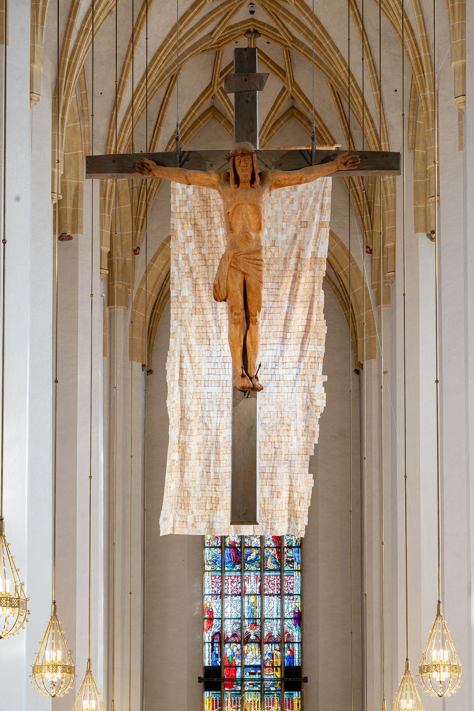 Münchner Liebfrauendom. Einen Akzent setzt in diesem Jahr Lisa Granada mit der bildnerischen Intervention „Cartografía inconclusa / Unfinished Cartography“, bei der gebrauchte Teebeutel zu einem Tuch verbunden sind. Die Installation wird bis 31. März im Chorraum des Doms über dem Altar hängen und soll unter anderem an die Tradition des Fastentuchs erinnern. Der Gottesdienst wird im Internet live gestreamt unter