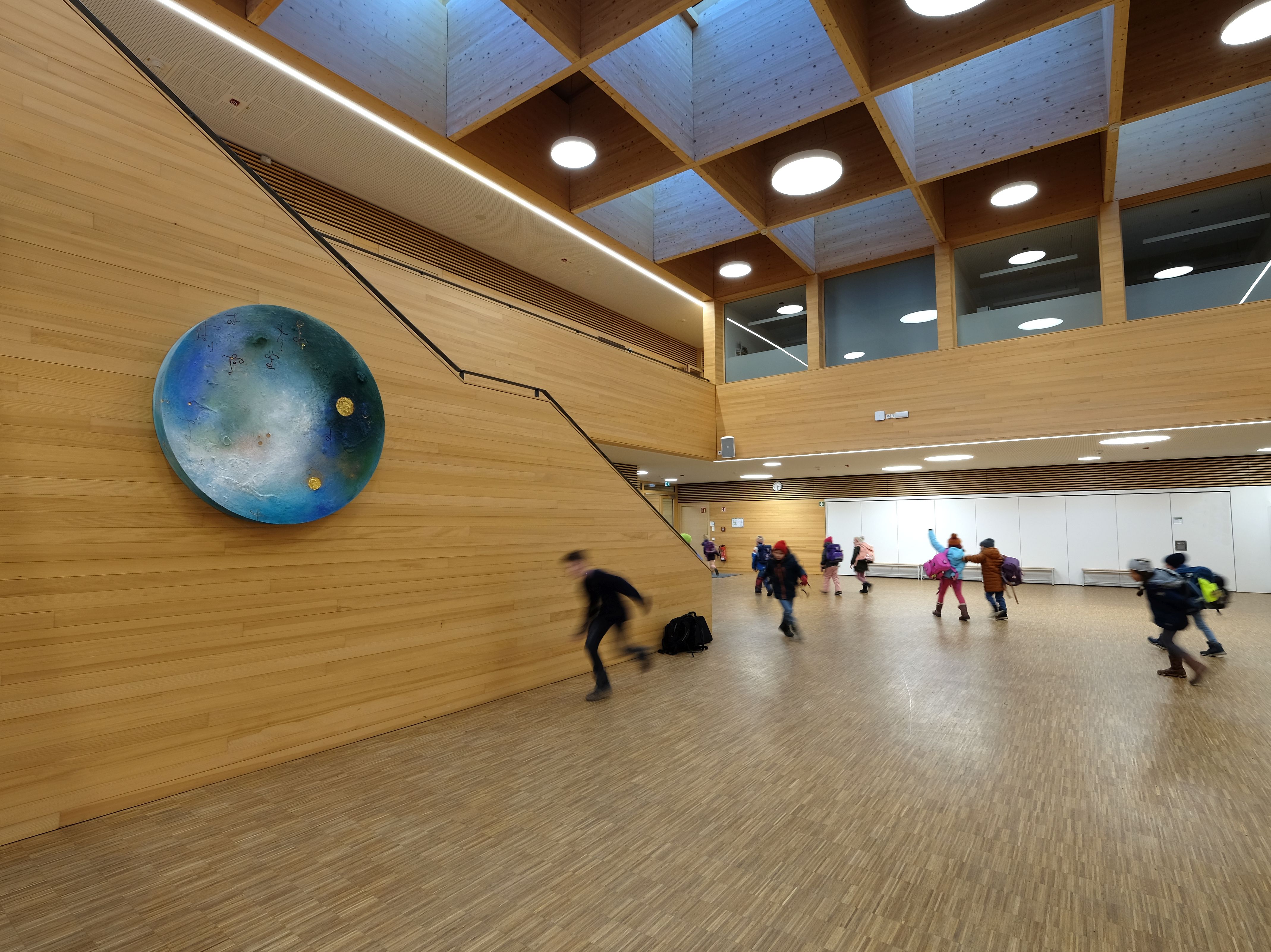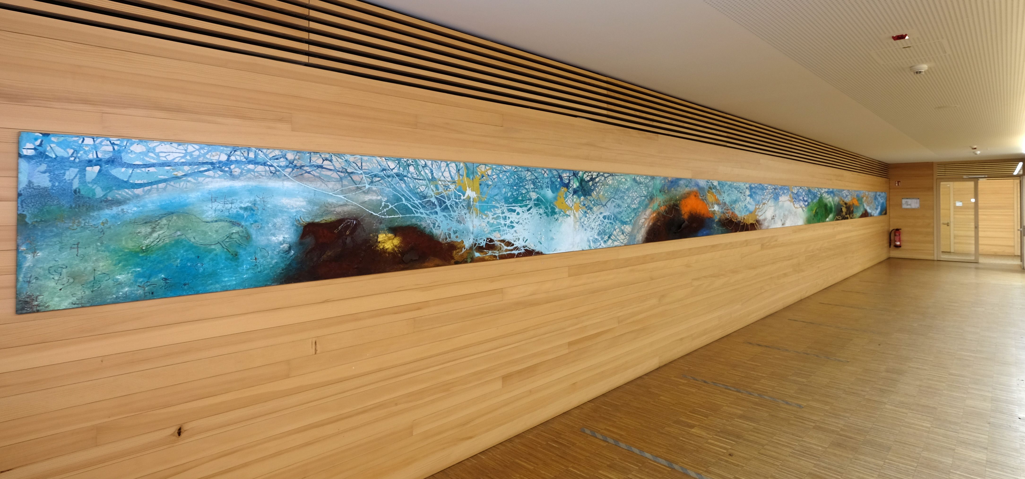 München/Pullach, 15. Oktober 2025. Der Werkzyklus „Himmelsbilder – Weltennetz“, den die Münchner Künstlerin Anja Verbeek von Loewis für das erzbischöfliche Pater-Rupert-Mayer-Schulzentrum in Pullach bei München geschaffen hat, ist nun erstmals auch öffentlich zu sehen. Bei einer