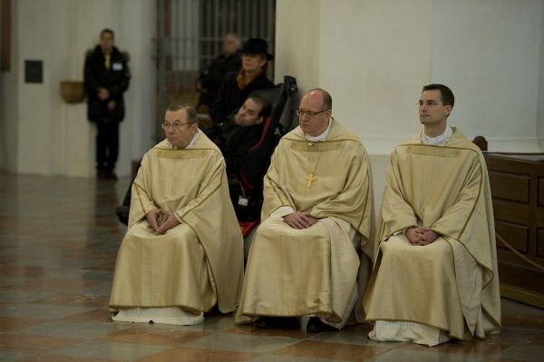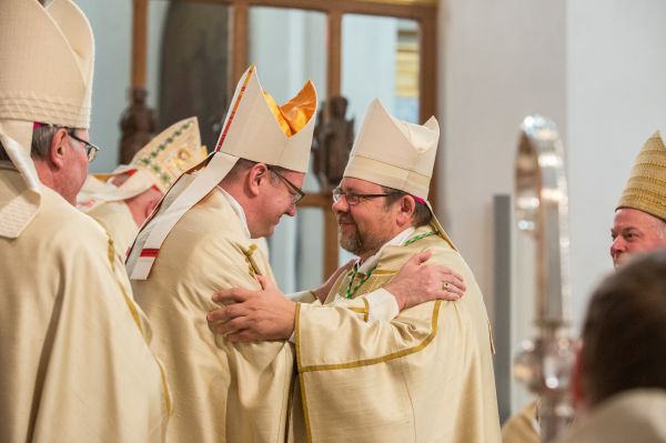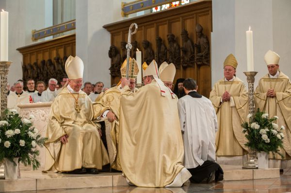 Weihbischof zu Stolberg sagte, während der Vorbereitung auf die Bischofsweihe habe er „in großer Dankbarkeit eine gewisse Gelassenheit gefunden“ und sich „sehr getragen gefühlt“. Immer wieder habe er im Laufe seines Lebens die Erfahrung gemacht, „dass es anders kam, als ich es mir ausgedacht habe, dass es aber letztlich gut wurde“. So könne er auch jetzt sagen: „Mit Gottes Hilfe trete ich dieses Amt an, bin ich bereit, Verantwortung zu übernehmen.“ Besonders junge Menschen rief zu Stolberg dazu auf, sich auf die Führung Gottes einzulassen: „Gott kennt uns besser als wir uns selbst. Dort, wo er uns hinführt, da ist der beste Platz für uns.“ Den Gläubigen dankte er für ihr Gebet und bat sie um ihre Unterstützung und Begleitung: „So möchte ich mich gern mit Ihnen auf den Weg machen, dass wir uns bemühen, die Botschaft Jesu Christi weiter auf den Weg zu bringen.“