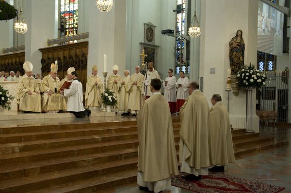 Die Bischöfe müssten „inmitten des Volkes Gottes“ gehen „auf dem Weg, der ihm von Gott gewiesen ist“, sagte der Erzbischof. Die Kirche begegne dabei der Versuchung, in die Vergangenheit zu schauen und sich von Resignation und Verzweiflung bestimmen zu lassen, sowie der Versuchung, „um sich selber zu kreisen und nicht zu erkennen, dass diese Berufung für alle Menschen da ist“. Gott sei aber „Vater aller Menschen, jedes Menschen, und wir haben Zeugnis dafür abzulegen, dass er für alle da sein will“.