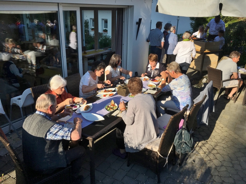 Beim einen Stehempfang am Pfarrheim im Anschluss an den Gottesdienst, der von einigen fleißigen Händen ausgerichtet wurde, gab es Getränke, Käse, Speck und Brezen und man hatte die Gelegenheit sich auch mit dem Kardinal zu unterhalten. Der zeigte sich hierbei recht locker, suchte das Gespräch mit den Firmlingen, Paten und Eltern und versuchte mit möglichst vielen Anwesenden zu plaudern.