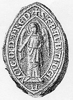 Das Siegel Alberts als Professor zeigt in der Umschrift links seine Zugehörigkeit zum Predigerorden (ORD PRED) und rechts seine Herkunft (S. FR ALBTI DEL) d.h. Siglum Fratris Alberti de Lauingen. Der Tuba blasende Engel in der Bildmitte ist das Symbol der weithin schallenden Verkündigung der Dominikaner (= Prediger).