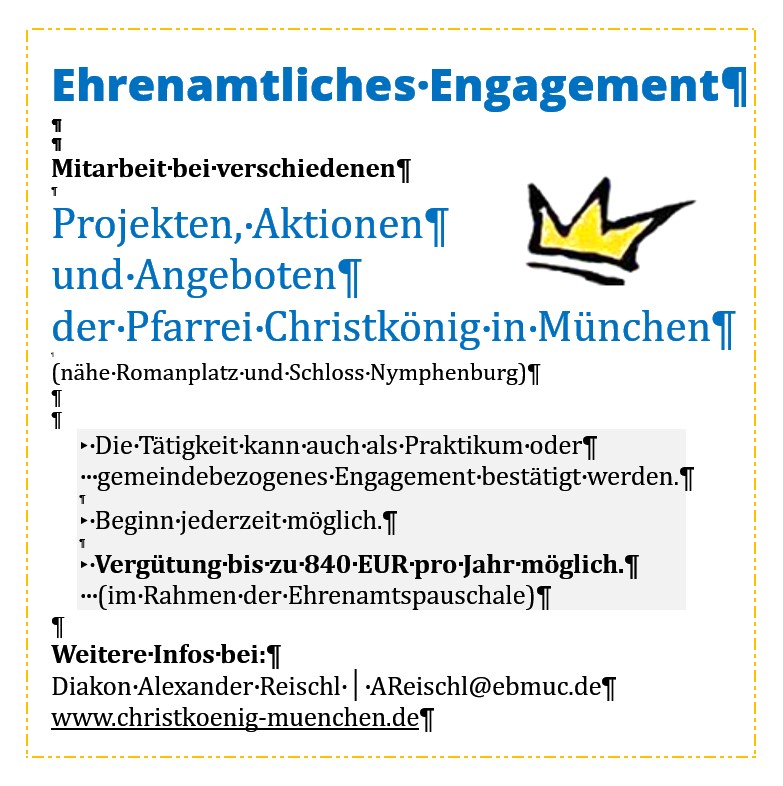 Mitarbeit bei verschiedenen Projekten, Aktionen und Angeboten in unserer Pfarrei