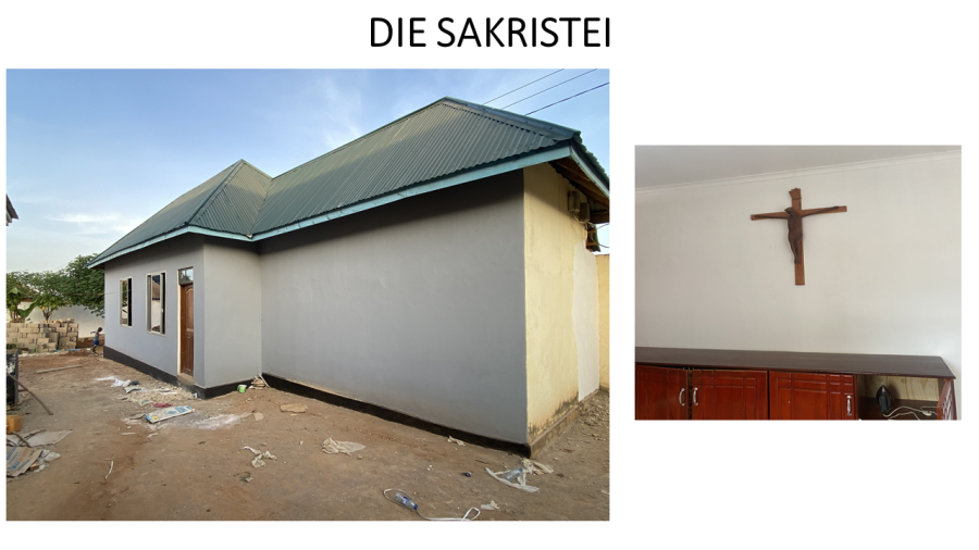 Zunächst wurde das Pfarrhaus mit Pfarrbüro, eine Sakristei und ein Zaun um das Baugelände errichtet.