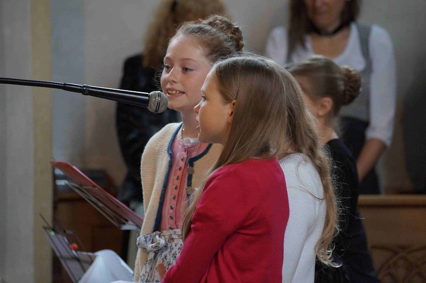 Zum Dank für den besonderen Tag kamen die Kommunionkinder mit ihren Familien am Abend noch einmal zu einer feierlichen Maiandacht zusammen. Kurz vor der Andacht freuten sich die Kinder über einen kleinen Vogel, der sich in die Pfarrkirche verflogen hatte. Die Jugendgruppe der Pfarrei zeigte den Kommunionkindern eine bildhafte Darstellung des glorreichen Rosenkranzes. Schwer zu schleppen hatten die Kinder schließlich mit ihren Körben, in denen am Ende der Andacht die Erstkommunionandenken, die selbst gebastelten Glaskreuze und Weihwasserkessel aus Ton und das Geschenk der Pfarrei von Pfarrer Kreß gesegnet wurden. Ihren Erstkommunionsausflug zum Salzbergwerk unternehmen die Kinder in diesem Jahr wegen einem Landschulheimaufenthalt erst am kommenden Freitag.