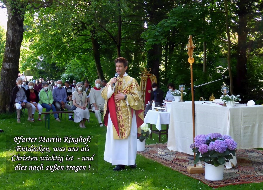 Den Festgottesdienst zelebrierte Pfarrer Rolf Merkle bei strahlendem Sonnenschein auf dem Rathausplatz in der Ottobrunner Ortsmitte. Anschließend zog die Prozession zur St. Otto - Kirche, wo dann auch der Schluss-Segen erteilt wurde. Wo dann aber auch der improvisierte Biergarten unter den Bäumen vor der Kirche noch für längeres Verweilen einlud.