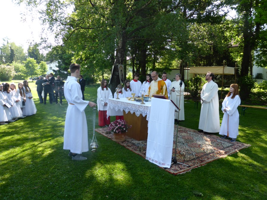 Im Jahr führte die Fronleichnamsprozession von der Eichendorffwiese über die Ottostraße, die Rosenheimer Landstraße und die Finkenstraße mit Zwischenstationen an der Feuerwache und der Finkenstraße nach St. Albertus Magnus.