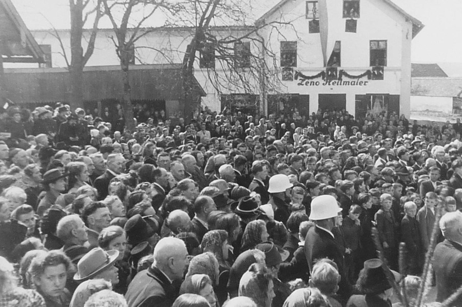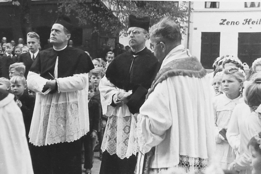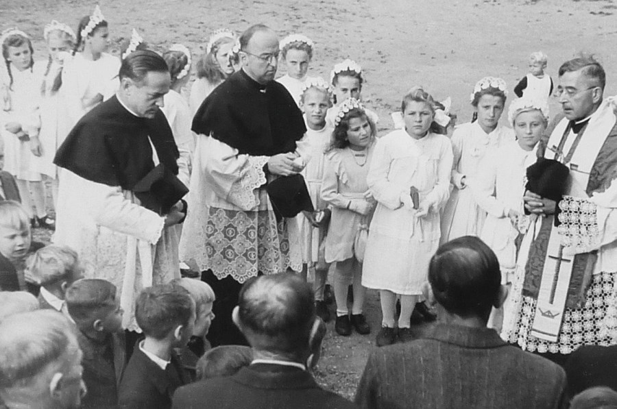 Kardinal Faulhaber blieb noch solange im Pfarrhof bis der Klang der neuen Glocken am Nachmittag über Bruckberg ertönte.