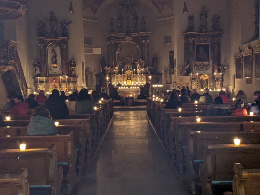 Ein besonderer Frauengottesdienst, abgehalten von der Gemeindereferentin Verena Grossmann und versehen mit verschiedenen Texten der Frauen, erwartete die Festgäste. Dabei ging es um das Thema Eigenliebe, Erkennen und Einsetzen des eigenen Potentials, Träume und Lebenspläne. Der Blick in einen Spiegel verdeutlichte den Frauen, wie sich das Lächeln und die Freude auf andere übertragen kann. Eine biblische Geschichte über die eigenen Fähigkeiten und das Gedenken an 25 verstorbene Mitglieder rundete den gefühlvollen Gottesdienst ab.