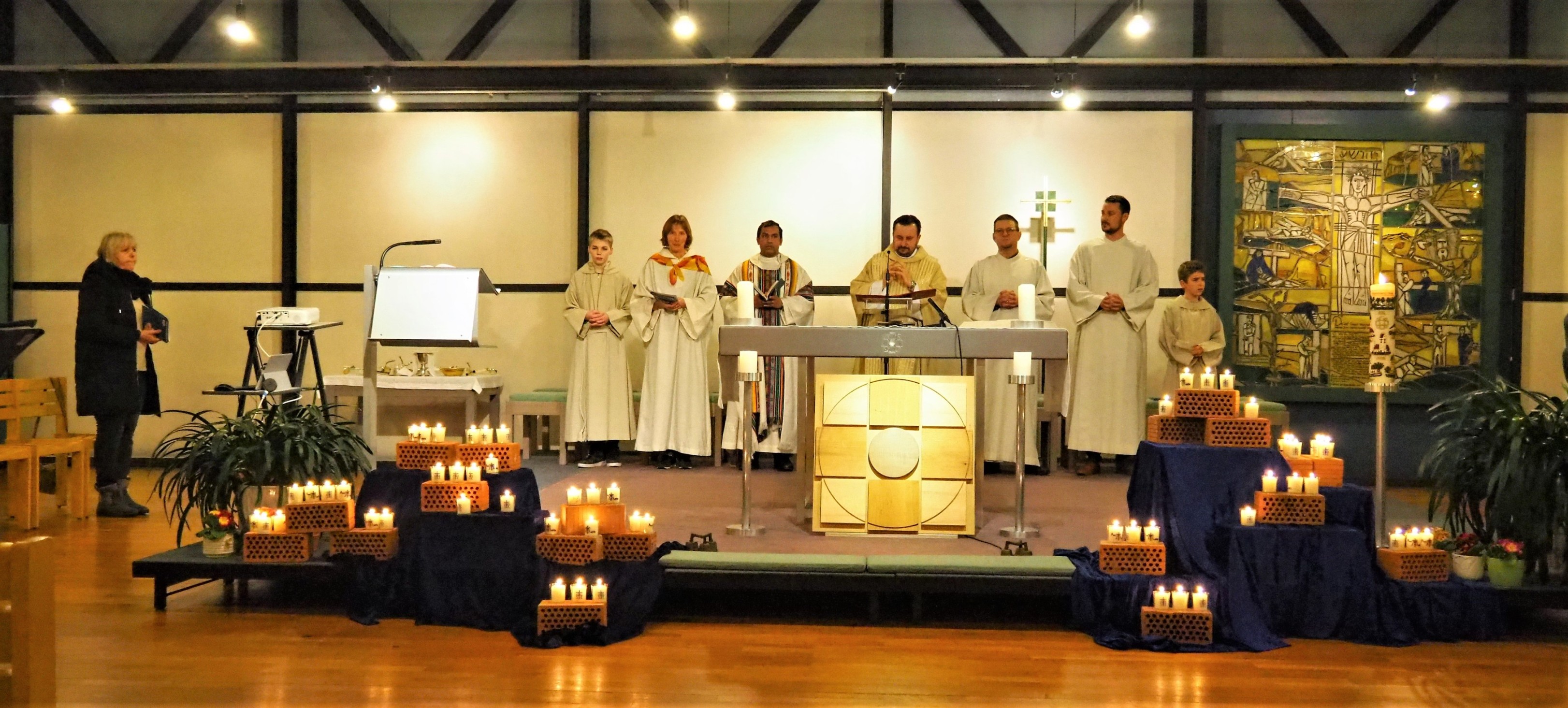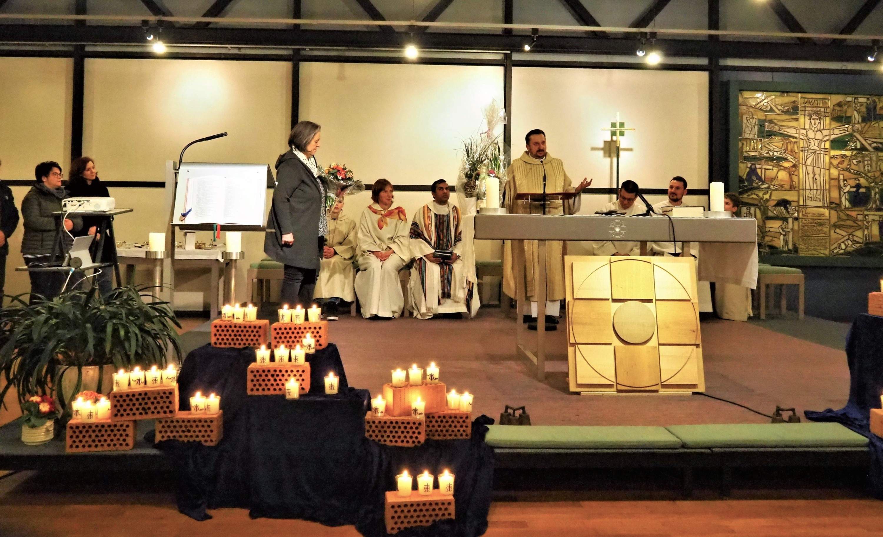 „Licht“ war das große Thema dieses Abends: Schon im Foyer des Pfarrzentrums erstrahlten kleine Kerzen, die wir nach der Segnung entzündeten und mit in den großen Saal nahmen und dann auf liebevoll gerichtete Podeste stellten. Das war ein wunderbarer Anblick!