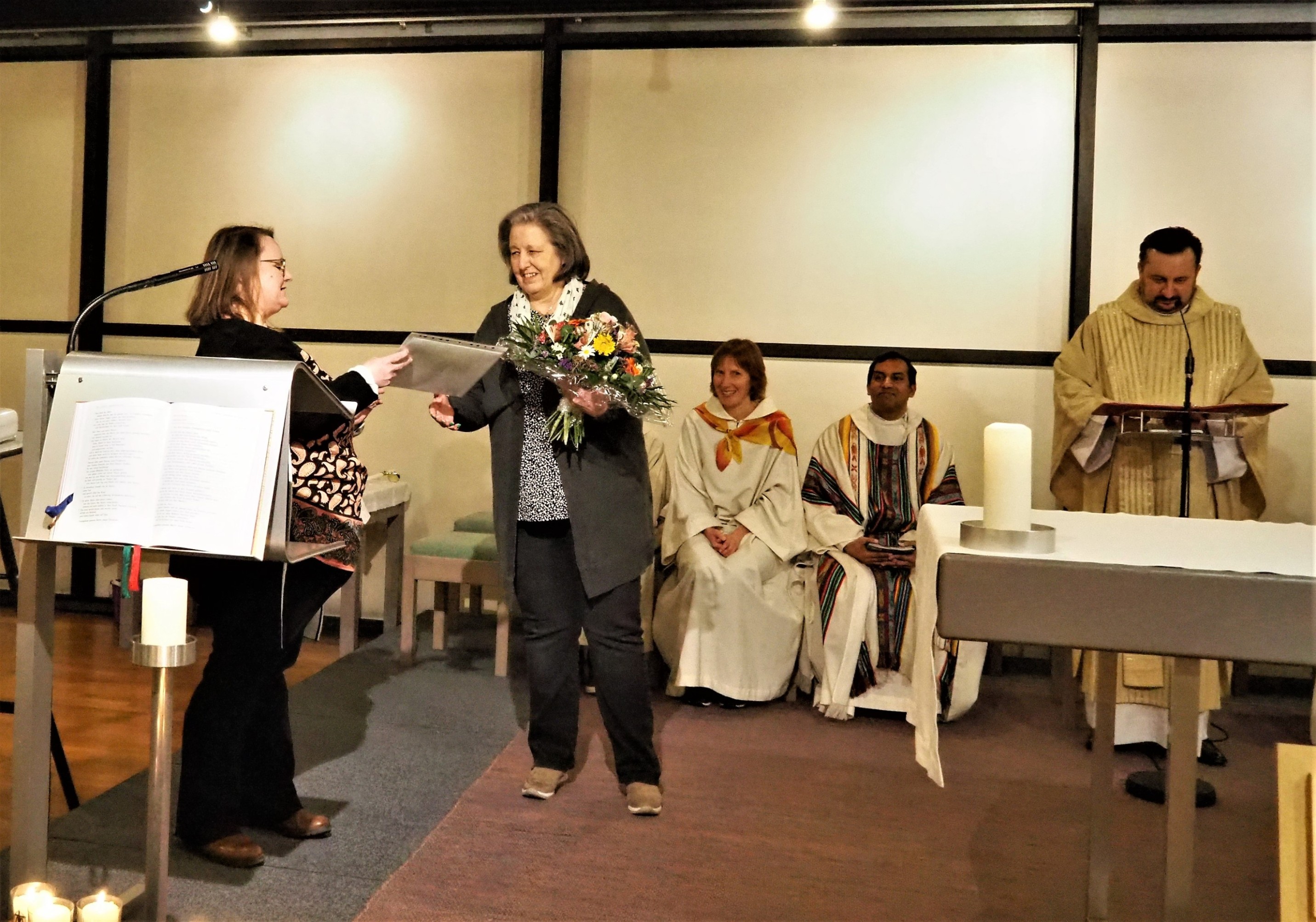 Am Schluss der Eucharistiefeier wurde Frau Dorothea Langer, fast 30 Jahre Mesnerin und Hausmeisterin im Pfarrzentrum Erdweg, verabschiedet. Dank sprachen Herr Pfarrer Bula, die Mesner*innen im Pfarrverband und der Pfarrgemeinderat Erdweg – jeweils mit einem Präsent - aus.