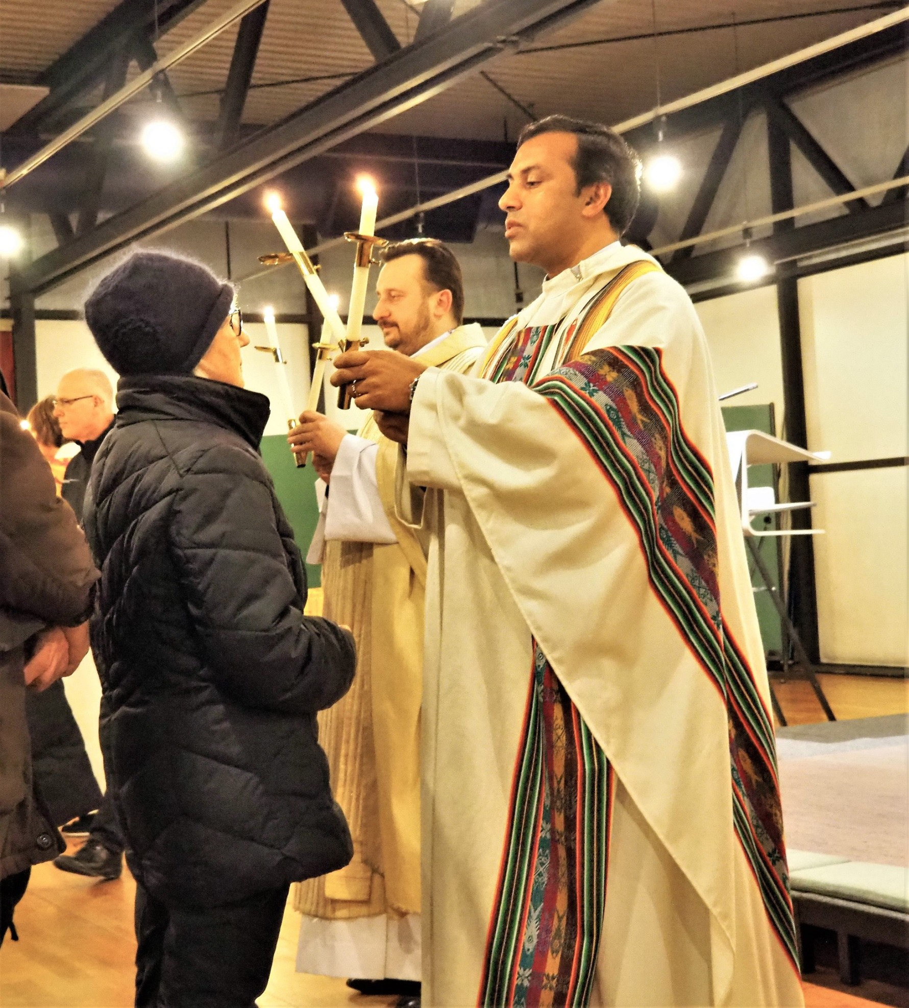Nach dem Gottesdienst wurde der Blasius-Segen gespendet und jede/r konnte sein Lichtmess-Licht mit nach Hause nehmen.