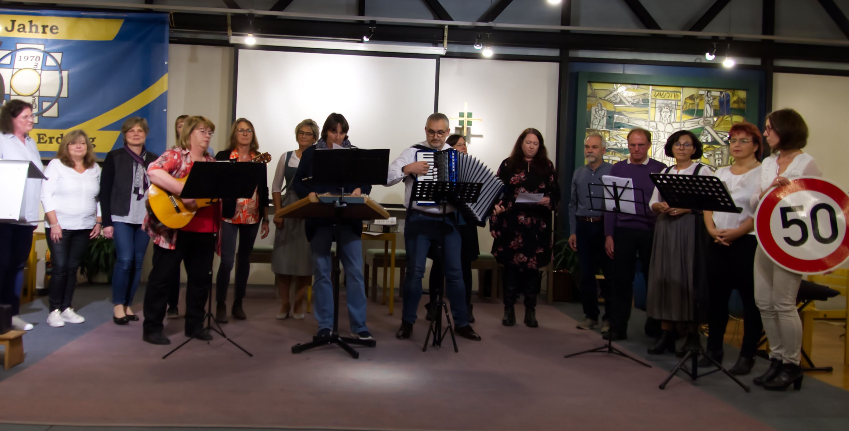 Im Gedicht von Brigitte Mayer und in den Liedern der Chöre aus Unterweikertshofen, Eisenhofen, Kleinberghofen, Arnbach und Welshofen wurde auf sehr amüsante Weise die vergangenen 50 Jahre betrachtet.