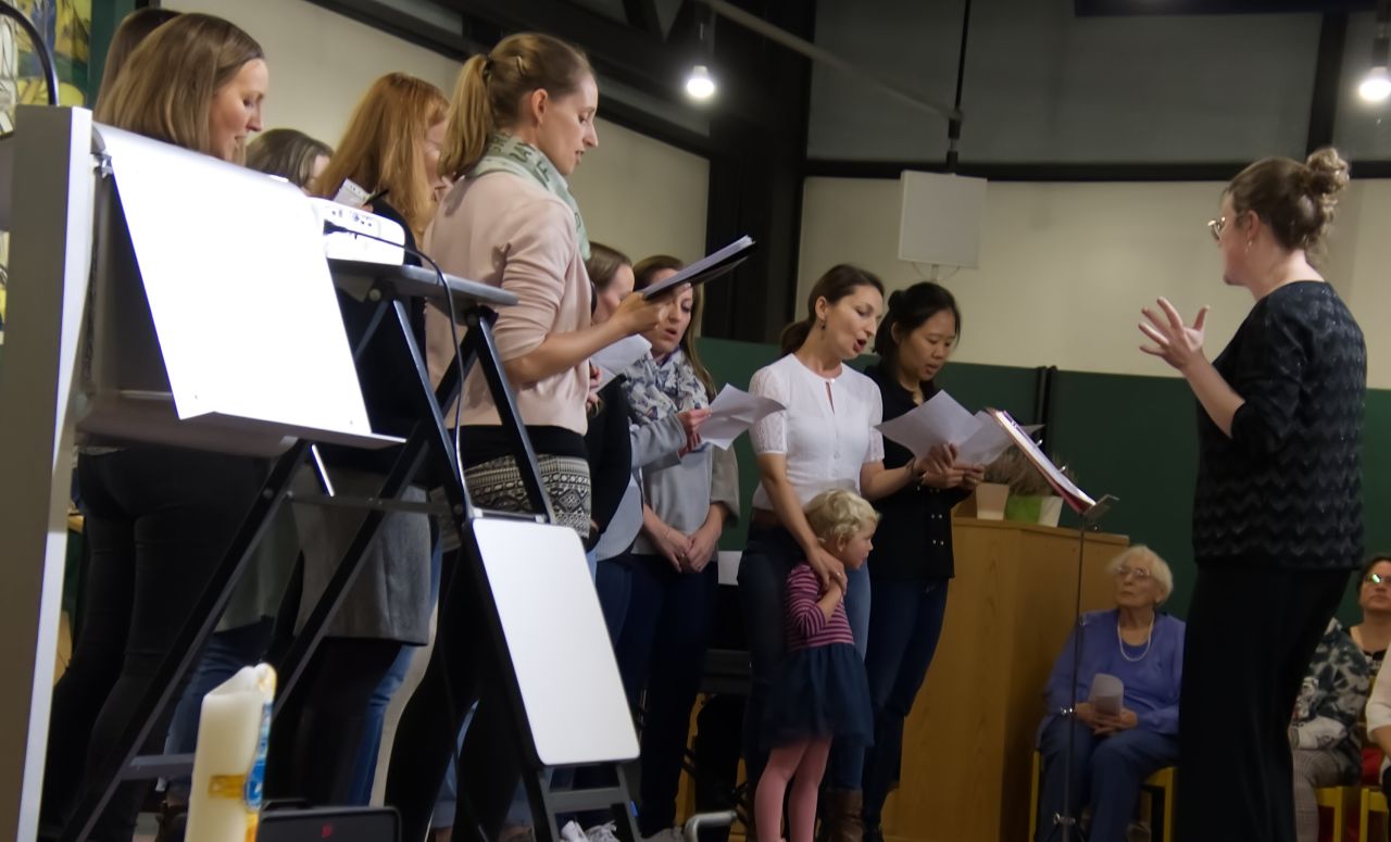 Das Lied der Happy Voices passte gut in den Rahmen des Pfarrzentrums und die jungen schönen Stimmen begeisterten das Publikum.