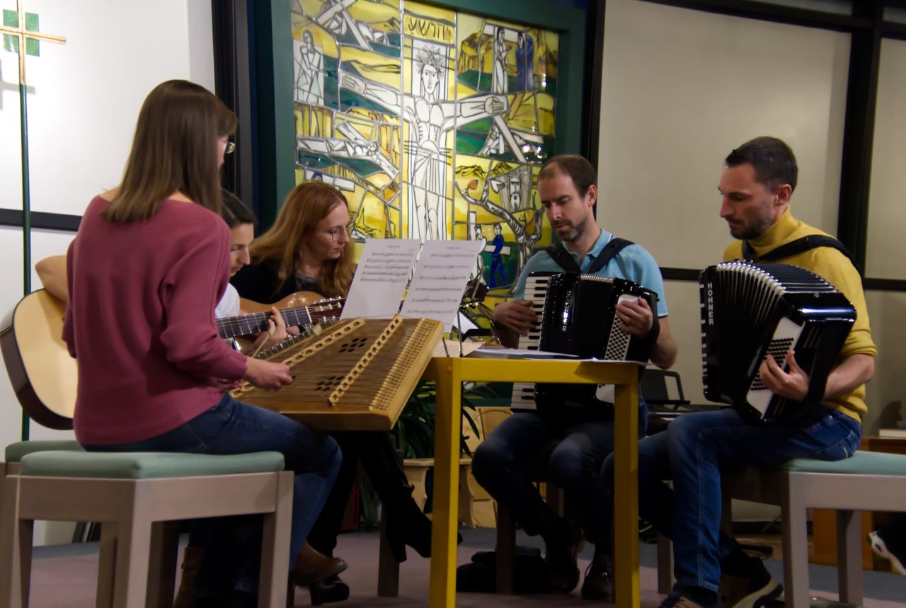 In der Pause begleitete uns die Hirschberg Musi und eine süße Kleinigkeit „quadratisch, praktisch, gut“ verwies auf den Wert unseres Pfarrzentrums.