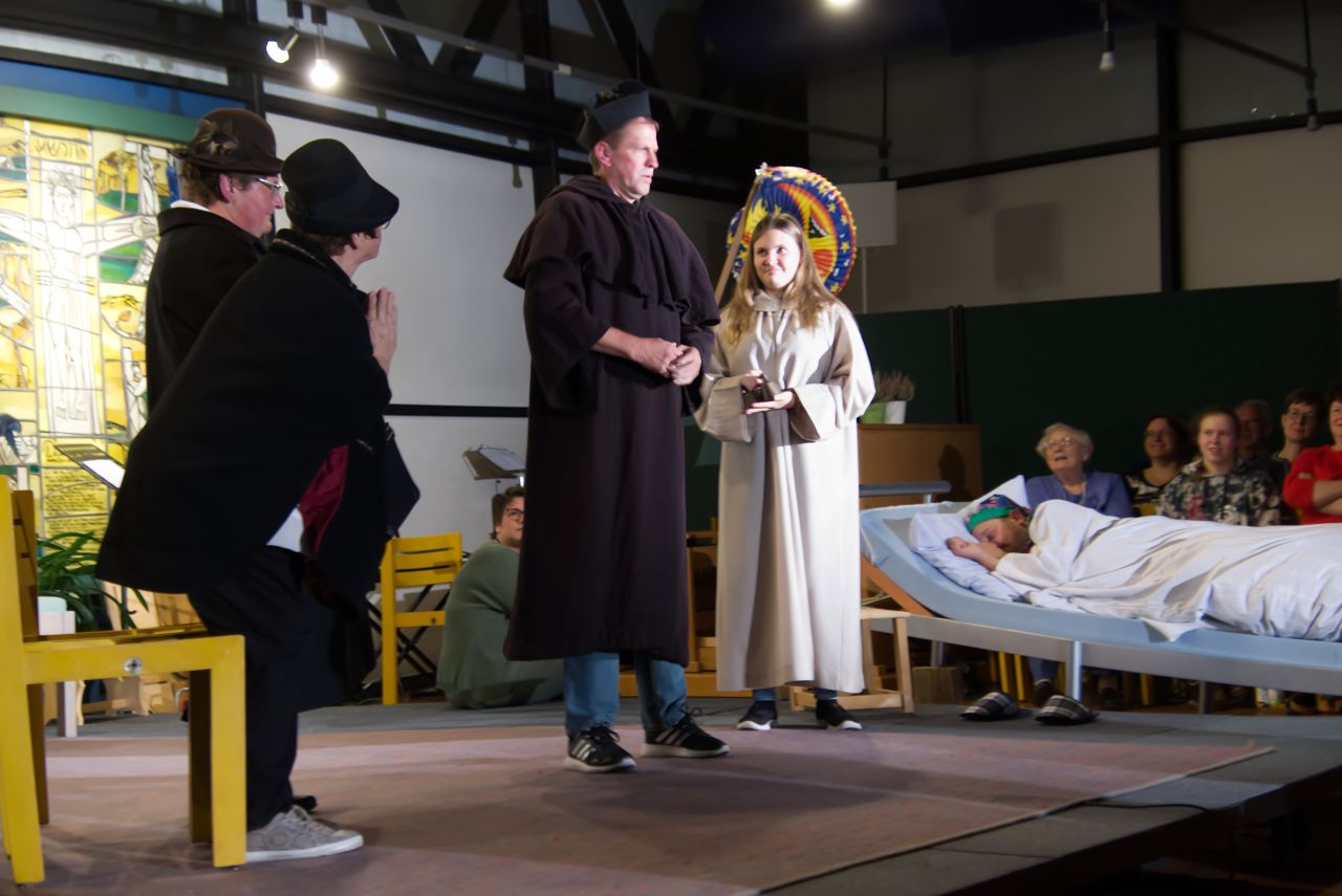 Das kleine Theaterstück unter der Leitung von Franz Baur, das den Geist der Entstehung des Pfarrzentrums phantasie- und humorvoll beleuchtete, brachte alle Besucher zum Lachen und es war der Wille der Orte zur Zusammenarbeit schön zu erkennen.