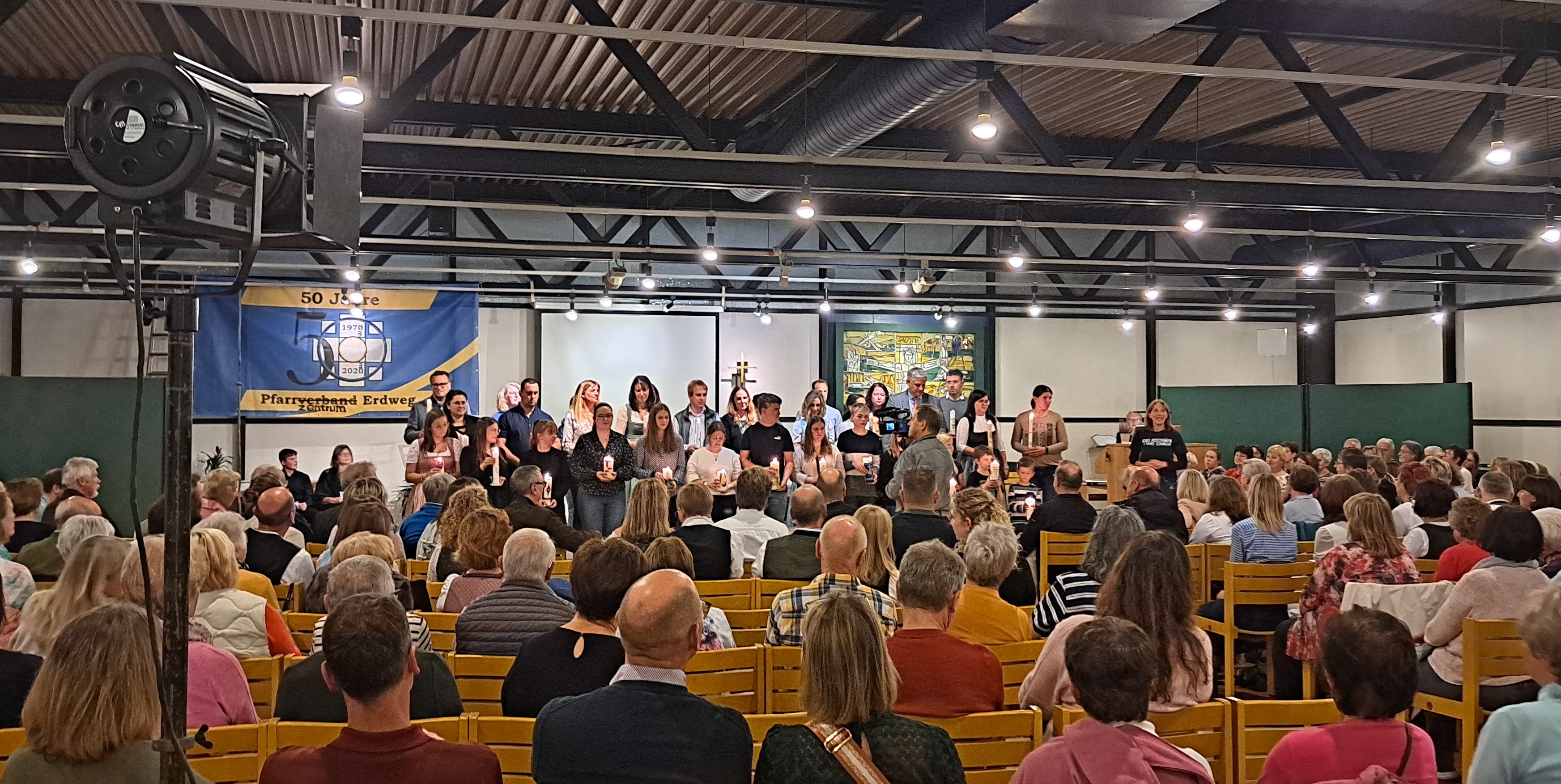 Zum Abschluss zogen im Licht der Kerzen Täuflinge aus den vergangenen 50 Jahren ein, es war ein sehr berührender Moment. Der erste Täufling war Thomas Kreis und auch unser Bürgermeister war unter den Taufkindern.