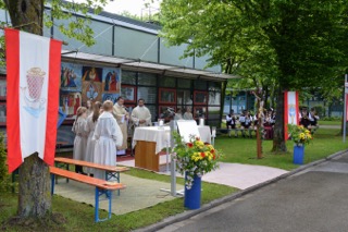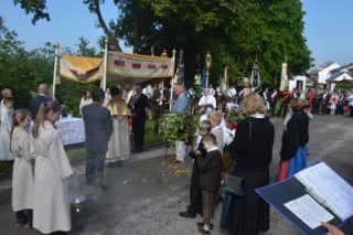 Bei strahlendem Wetter feierten die Gläubigen im Pfarrverband das Fronleichnamsfest. Der Gottesdienst, wie jedes Jahrmusikalisch gestaltet von der Eisenhofener Blaskapelle, fand vor dem Pfarrzentrum statt. Ein langer Prozessionszug führte durch die Erdweger Straßen bis wieder zurück zum Pfarrzentrum, Fahnenabordnungen und Kommunionkinder begleiteten das Allerheiligste.