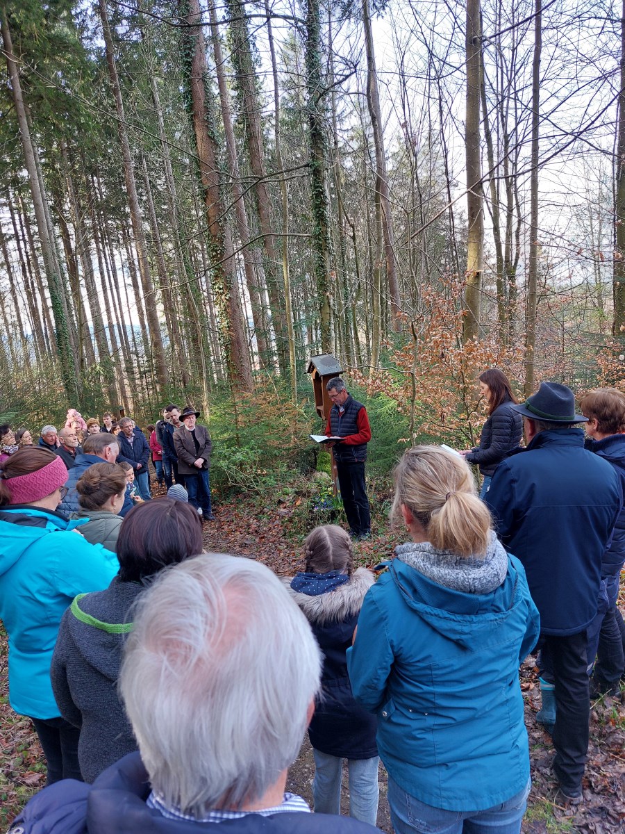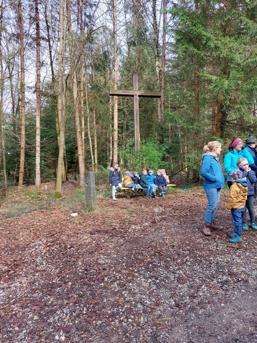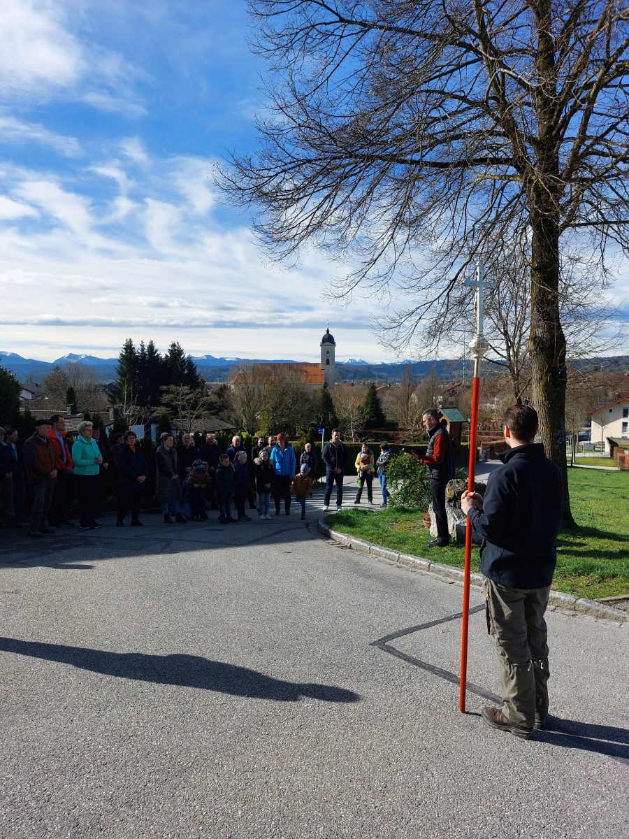 Bei strahlendem Sonnenschein trafen sich Jung und Alt und beteten den Kreuzweg am Karfreitag. Der Text wurde von Diakon Hubert Atzinger vorbereitet und basiert auf einem Kreuzweg von Franziskanerpater Christoph Kreitmeir.