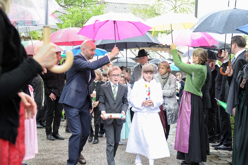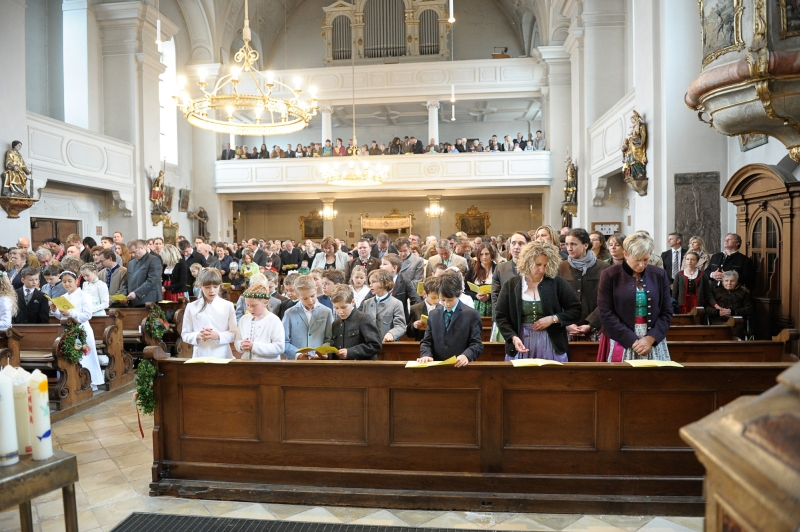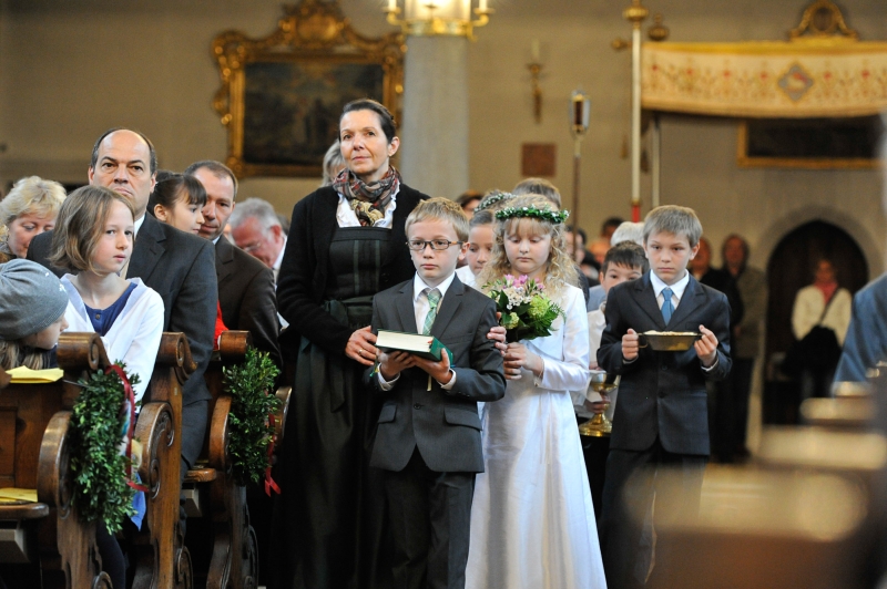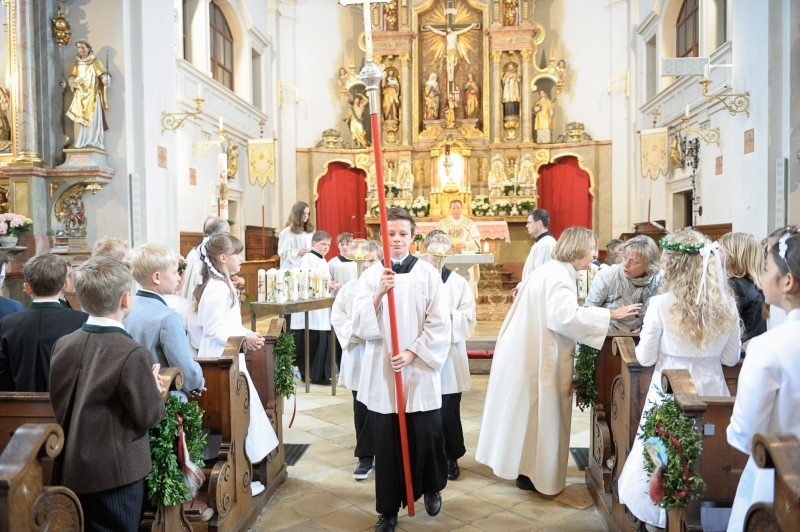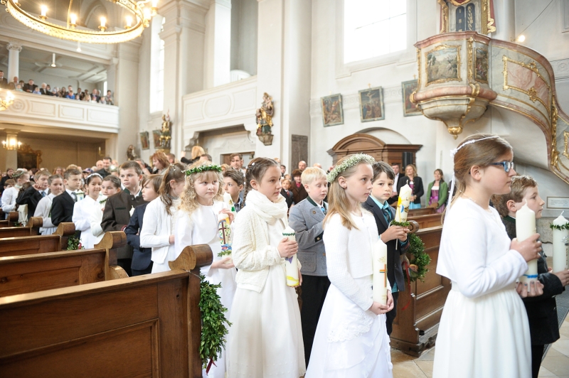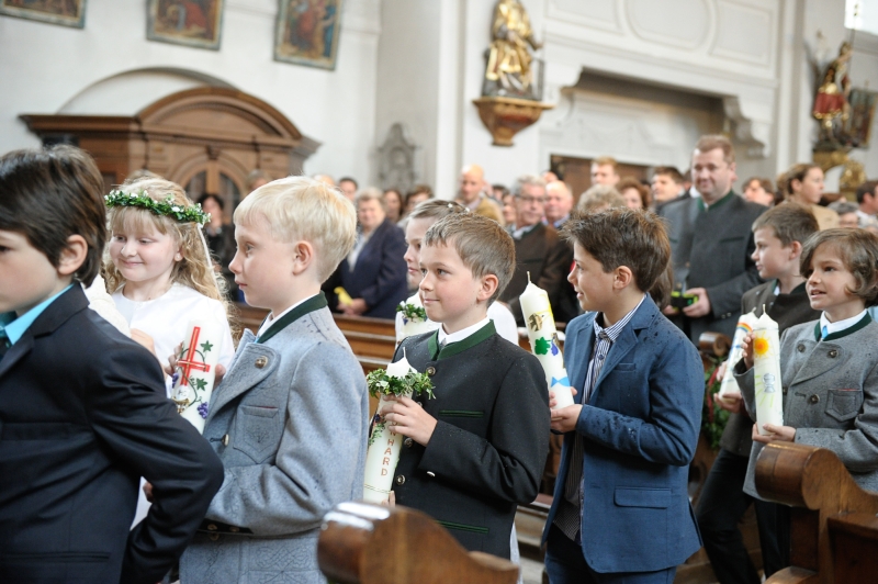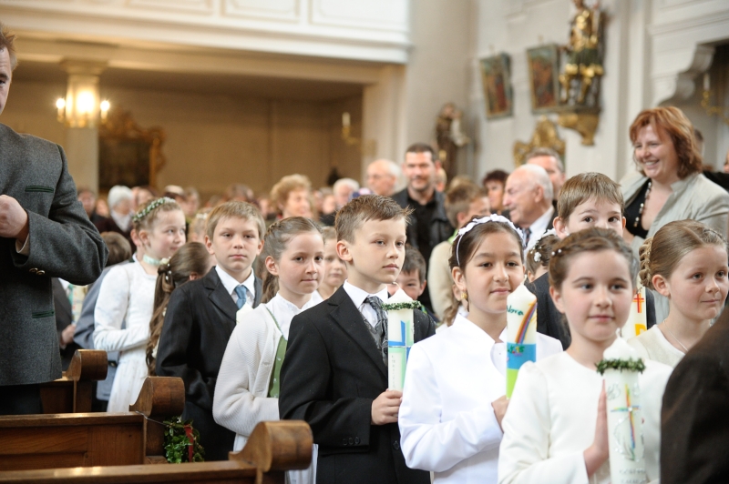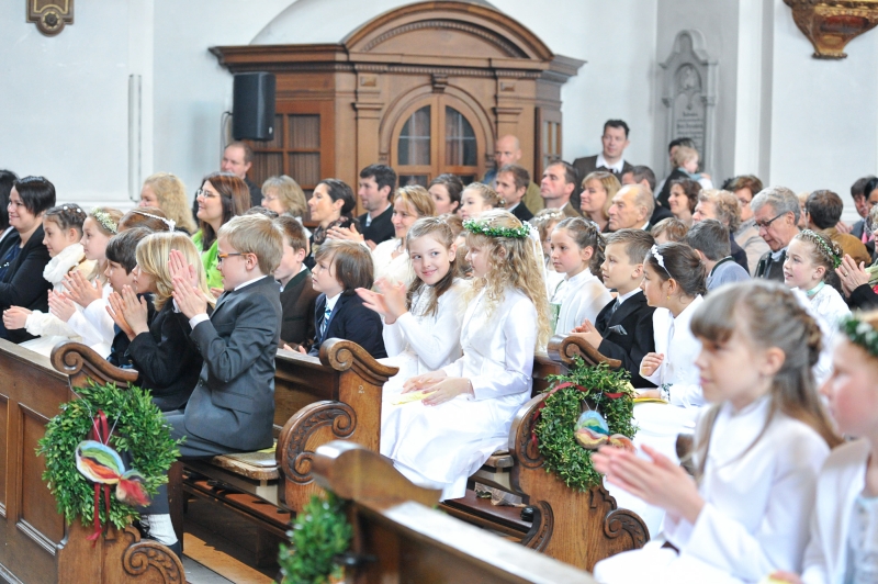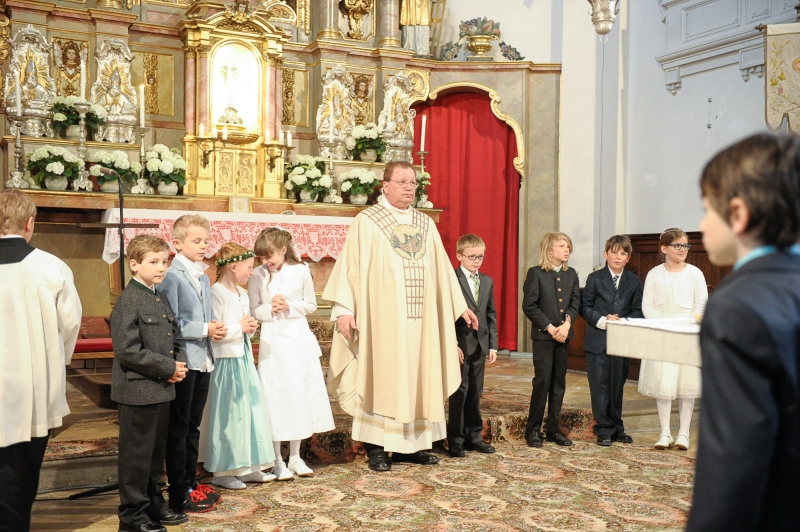 In allen Pfarreien wird der Erstkommuniontag feierlich begangen. Mädchen und Buben tragen ein festliches Gewand. Die Erstkommunionkinder können aber auch eine Albe tragen, ein weißes Gewand, das an die Taufe erinnert.