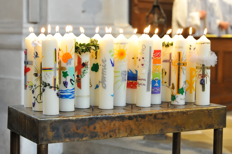 Weil Taufe und Eucharistie zusammengehören, wird bei jeder Erstkommunionfeier auch das Taufversprechen erneuert. Die Kommunionkerze erinnert ebenfalls an die Taufkerze.