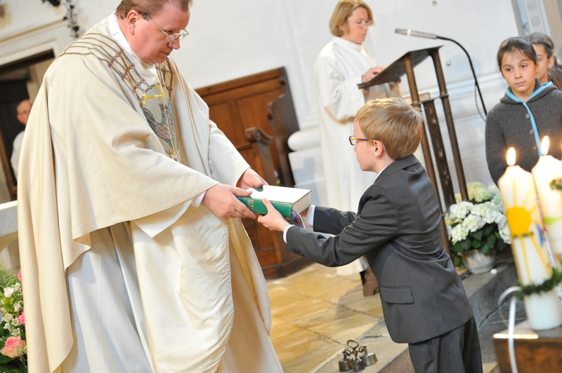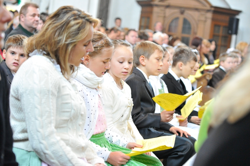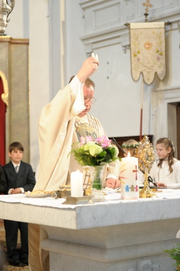 Die Eucharistiefeier ist zur Mitte der Gemeinschaft der Kirche geworden und Quelle ist die, aus der sie alle Kraft schöpft. Es ist das Geheimnis des Glaubens: Jesu Opfer und seine Hingabe bezeugen für immer, dass die Liebe die Wandlung der Welt bewirkt. In der Erstkommunion werden die Kinder in dieses Geheimnis eingeführt. Es ist bleibendes Geschenk für jede Christin und jeden Christ. Die Einladung ergeht an alle, sich immer tiefer durch die Teilnahme an der Messe, Sonntag für Sonntag, in dieses Geheimnis hinein nehmen zu lassen.