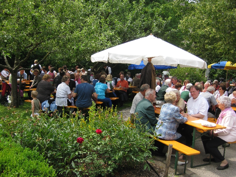 Nach dem feierlichen Familiengottesdienst, der von Pater Franz zelebriert wurde, waren anschließend alle Pfarrangehörigen in den wunderschönen Pfarrgarten eingeladen.